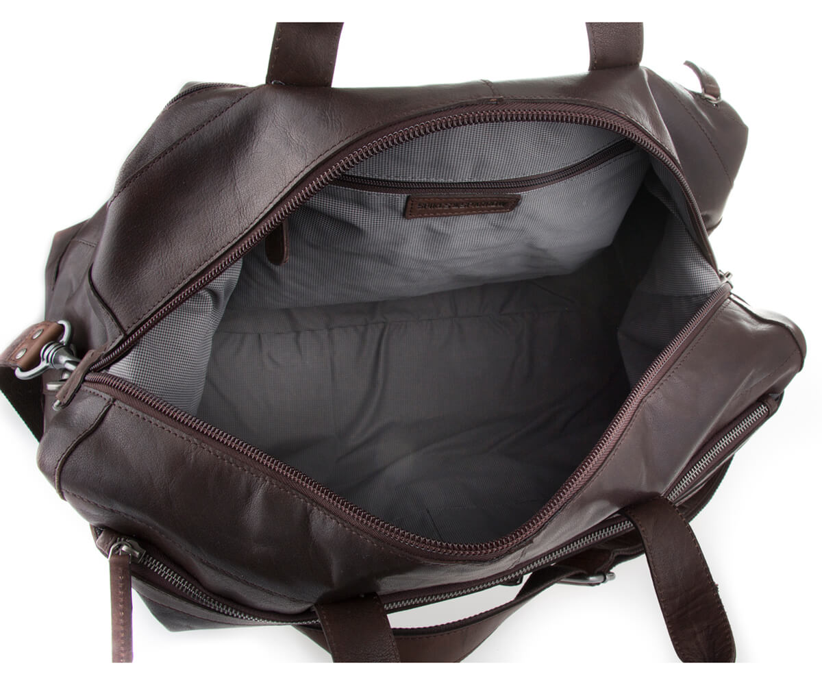 Tato kožená cestovní taška značky SPIKES & SPARROW je vyrobena z lícové hovězí kůže. Taška je chráněna kovovými nožkami na spodní straně, takže ji můžete bezpečně položit na podlahu, kdykoli potřebujete volnou ruku. Nastavitelný ramenní popruh umožní velice pohodlné cestování a díky 35L objemu i na delší cesty. Celá taška je uzaviratelná na zip.