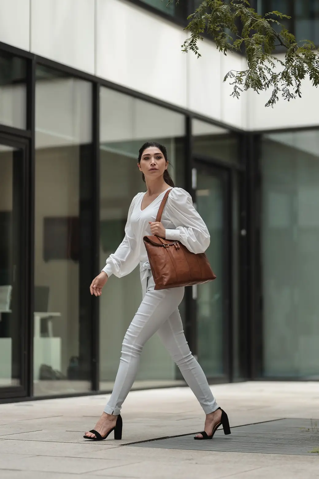 Kožená dámská kabelka SPIKES & SPARROW vyrobena ze 100% hovězí lícové kůže. Součástí této kabelky je odnímatelný, nastavitelný kožený popruh na rameno. Kabelka lze uzavřít na zip. Vnitřní zapínatelná kapsa na zip je výborná pro bezpečné nošení dokladů. Kabelka má uvnitř polstrované uzavíratelné pouzdro, do kterého lze uložit notebook do velikosti 16"