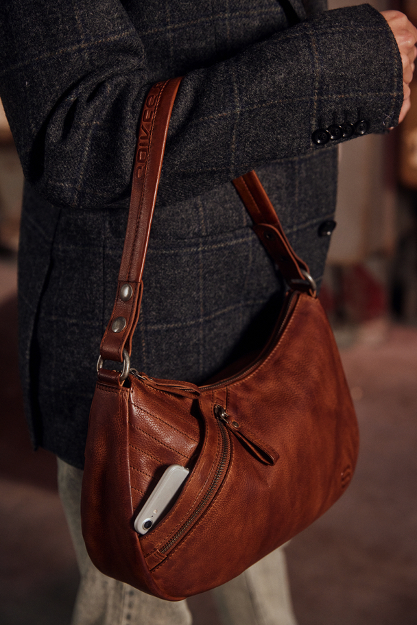 Brandy kožená kabelka přes rameno značky SPIKES & SPARROW vyrobená ze 100% hovězí lícové kůže. Taška má kožený nastavitelný popruh a je uzaviratelná na zip. Vnitřní uzaviratelná kapsa je idealní pro uložení dokladů.