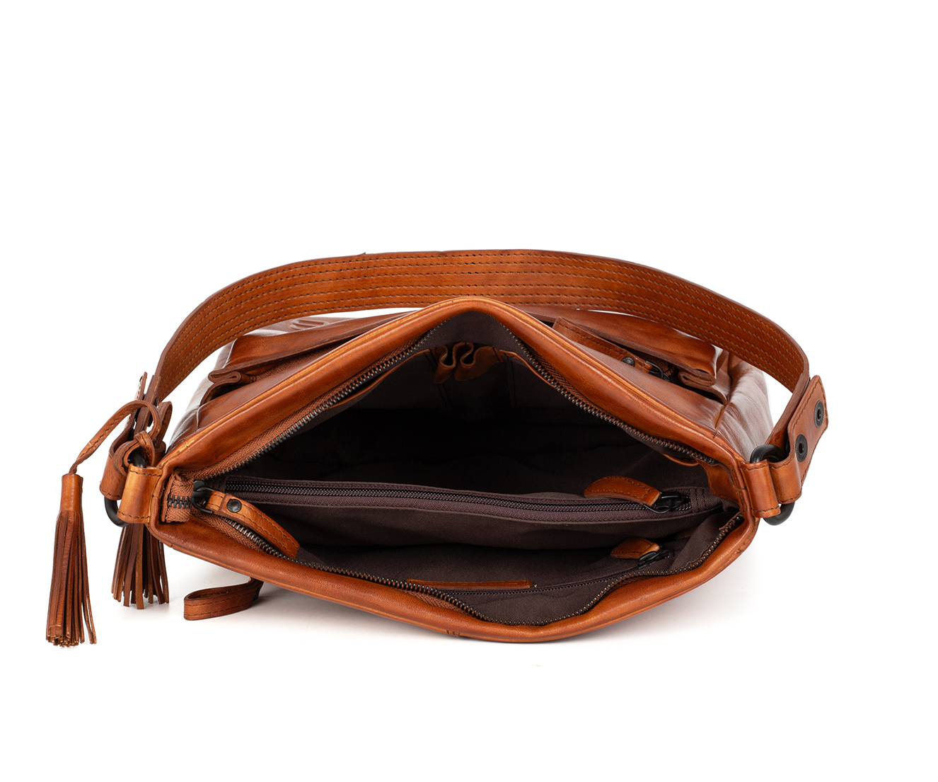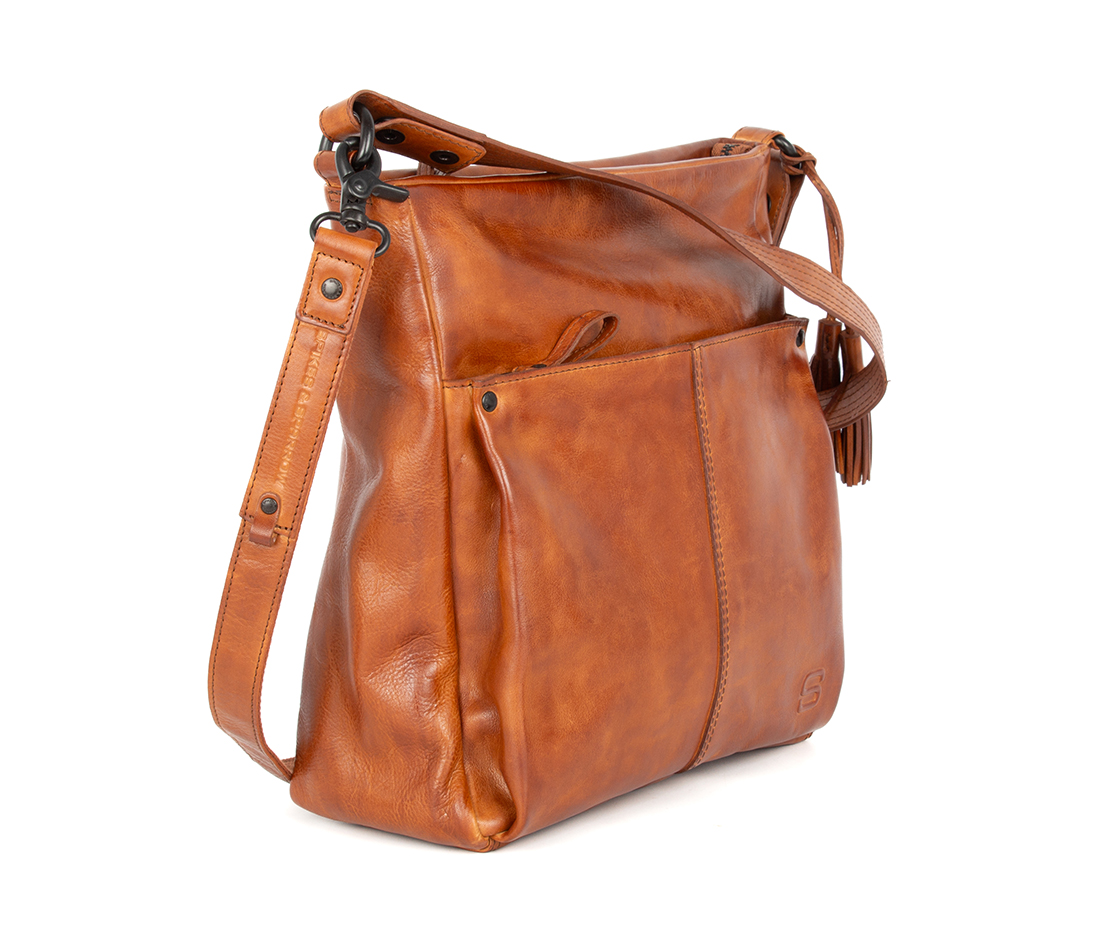 Taška přes rameno Saar je vyrobena z měkké apačské kůže a má pevný, přirozený vzhled. Přední kapsa má svislý šev a decentní cvočky. Taška se zapíná na zip a má prostorný vnitřní prostor. Nastavitelný ramenní popruh je praktický a stylový a je dodávána také s odnímatelným dlouhým ramenním popruhem. Na boku visí hravé kožené střapce pro ženský nádech. Ideální pro každodenní nošení!