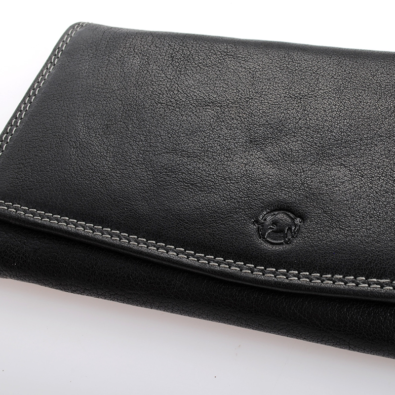 RFID ochrana, kvalitní lícová kůže, 3 přihrádky na bankovky, 2 vnitřní kapsičky na mince na zip, jedna vnější kapsa na mince na zip, 10 přihrádek na karty, velká vnitřní kapsa se slídou, 3 velké vnitřní kapsy na doklady, kvalitní podšívka, nitě, druky. Peněženka je zabalena v dárkové krabičce.