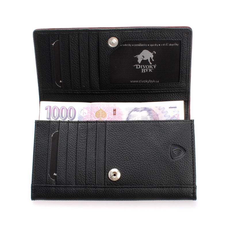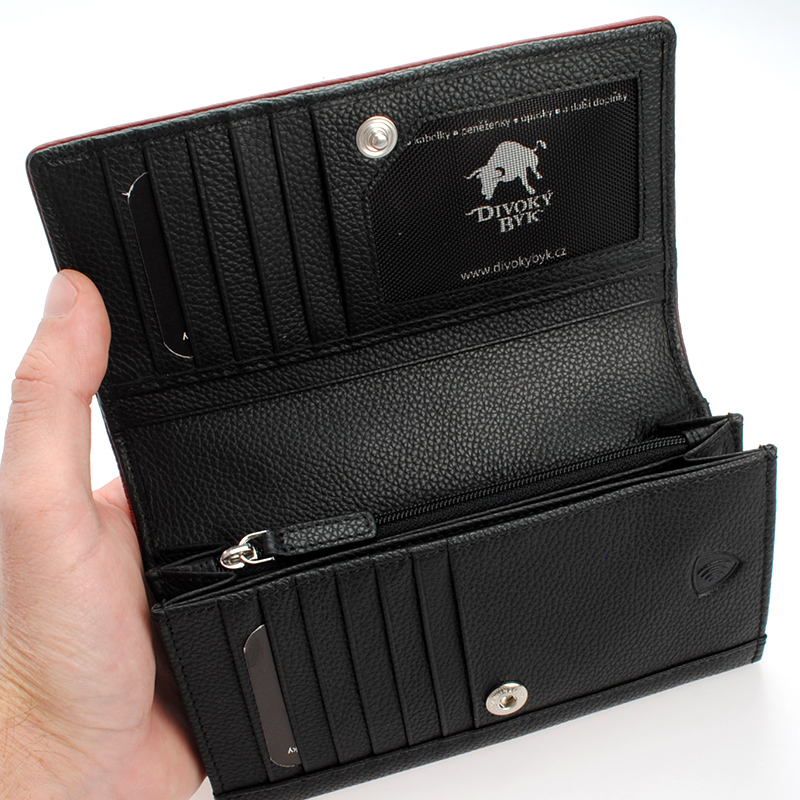 Tato dámská kožená peněženka je vyrobena ze 100% hovězí lícové kůže. RFID ochrana, kvalitní lícová kůže, 1 přihrádka na bankovky, kapsička na mince, 13 přihrádek na karty, kvalitní podšívka, nitě, druky,