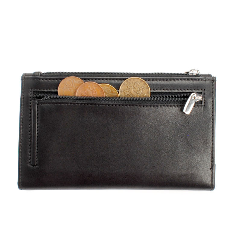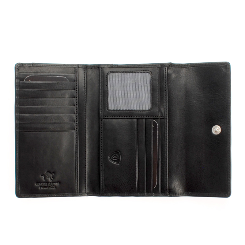 Tato dámská kožená peněženka je vyrobena ze 100%hovězí lícové kůže. RFID ochrana, kvalitní lícová kůže, 4 přihrádky na bankovky, 2x kapsička na mince, 12 přihrádek na karty, kvalitní podšívka, nitě, druky,