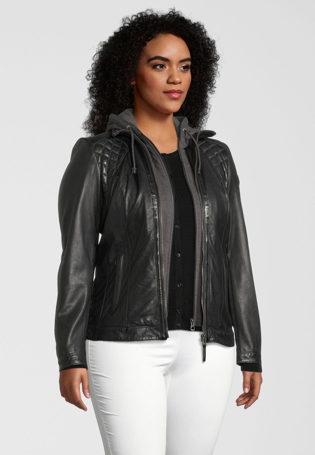 Dotaz k produktu - Černá kožená bunda s kapucí Skerry W20 Black, velké velikosti