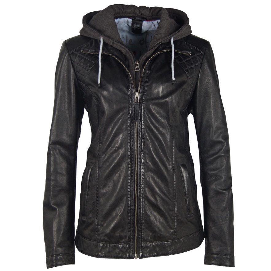 Černá kožená bunda s kapucí Skerry W20 Black, velké velikosti