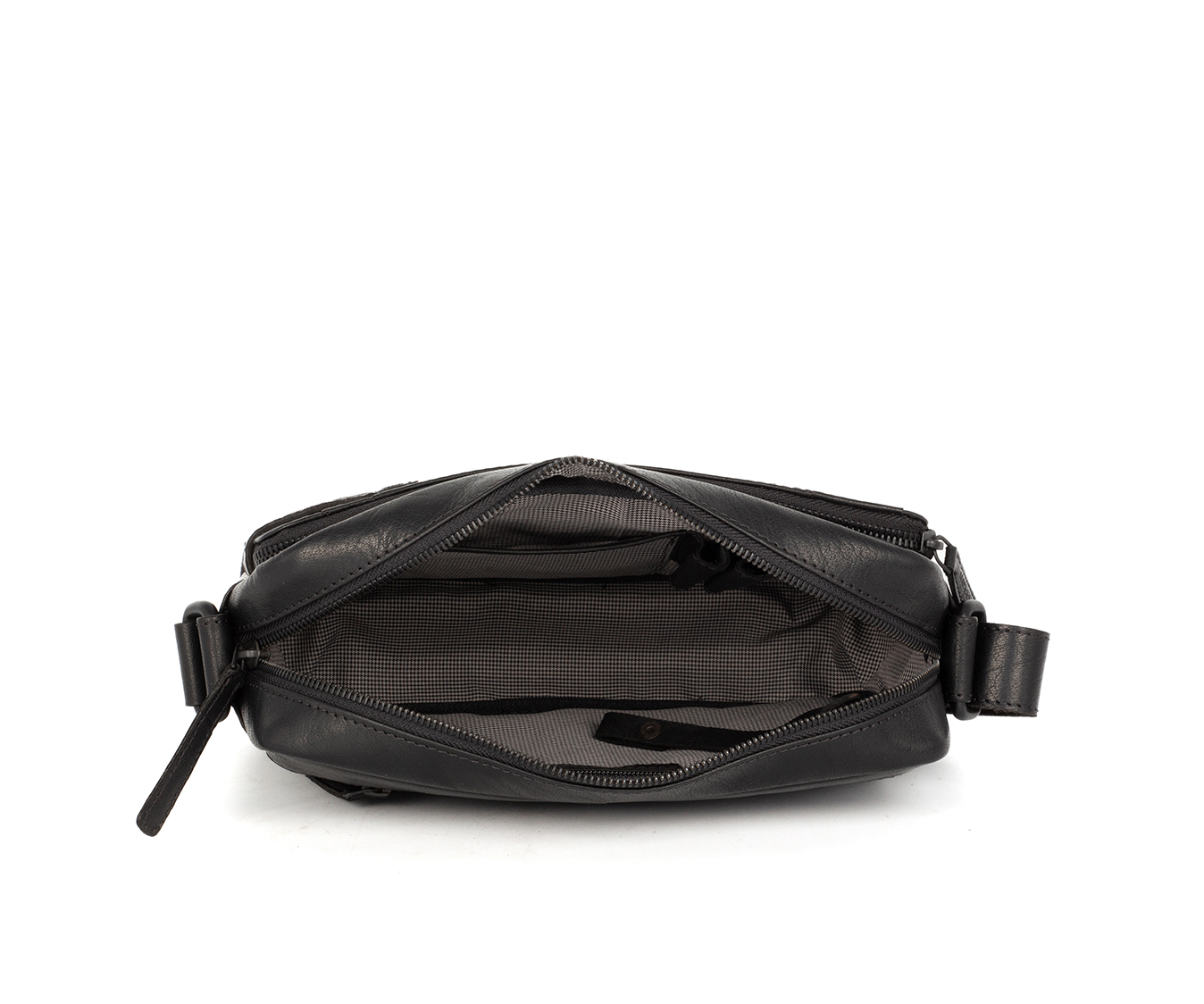 Černá kožená kabelka přes rameno značky SPIKES & SPARROW vyrobená ze 100% hovězí lícové kůže. Taška má kožený nastavitelný popruh a je uzaviratelná na zip. Vnitřní uzaviratelná kapsa je idealní pro uložení dokladů.