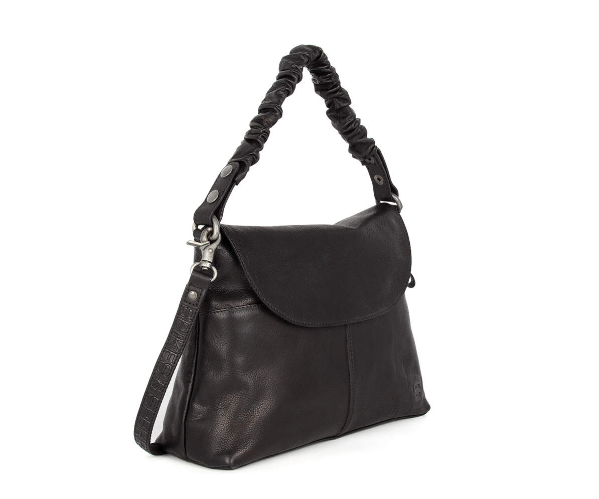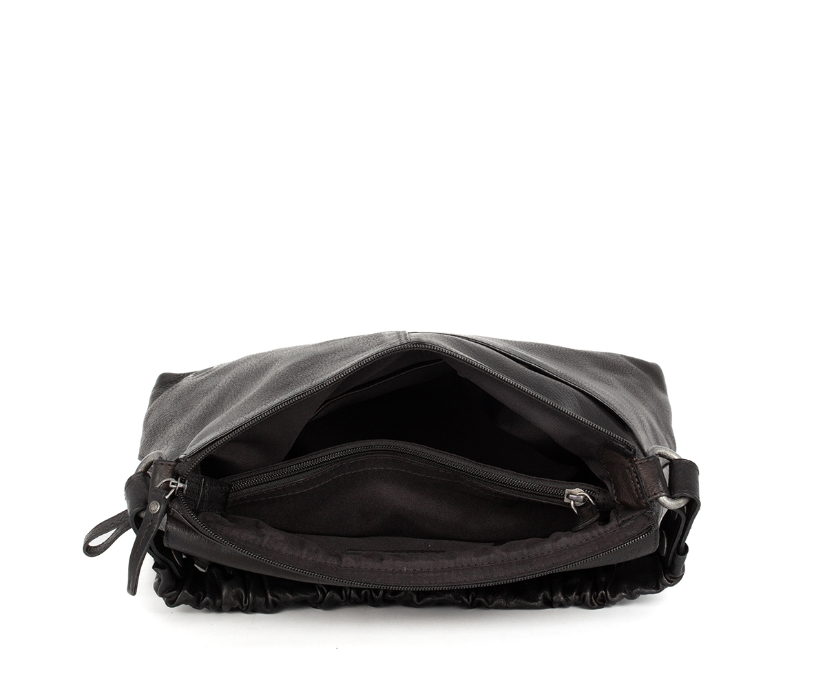 Černá kožená kabelka přes rameno značky SPIKES & SPARROW vyrobená ze 100% hovězí lícové kůže. Taška má kožený nastavitelný popruh a je uzaviratelná na zip. Vnitřní uzaviratelná kapsa je idealní pro uložení dokladů.