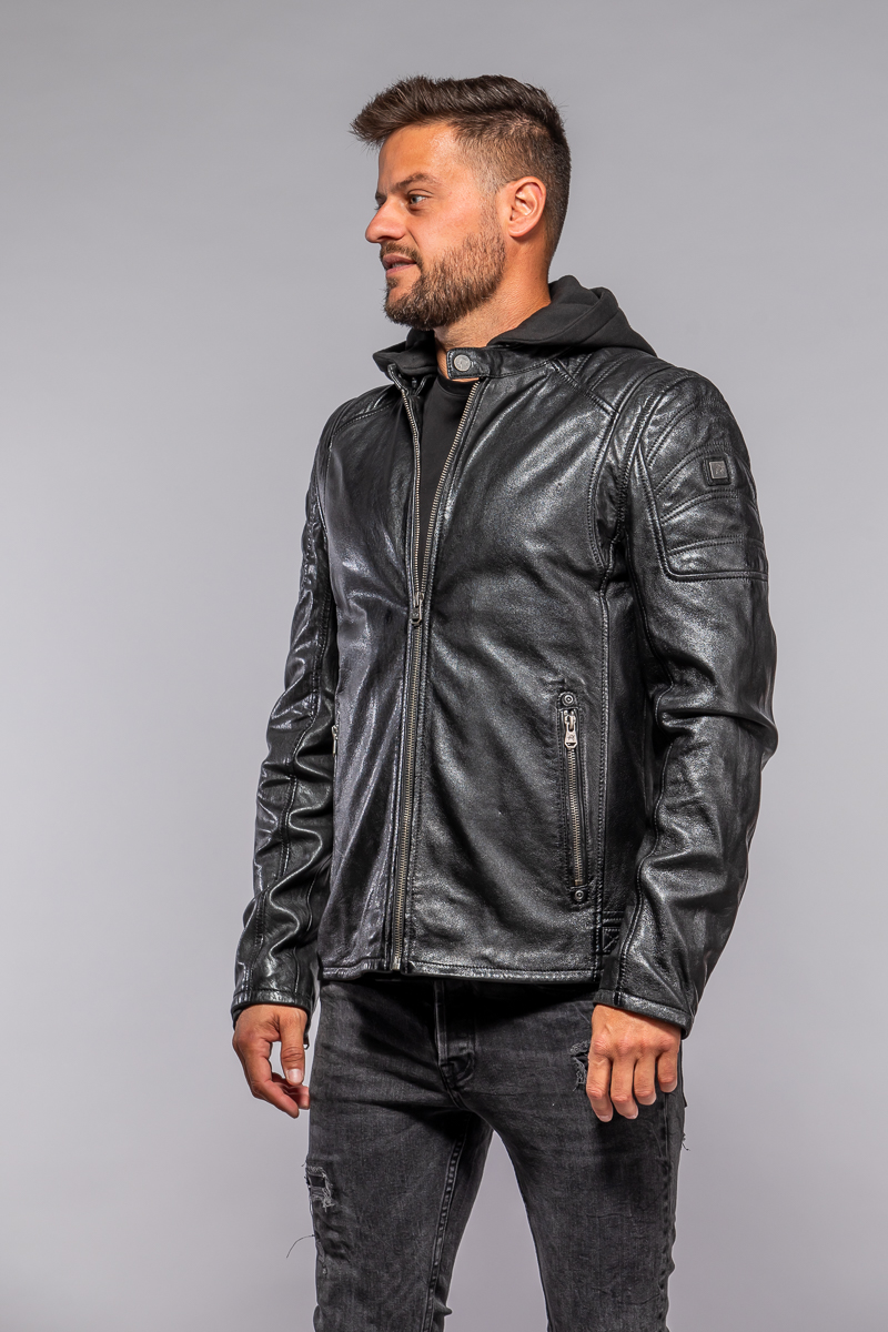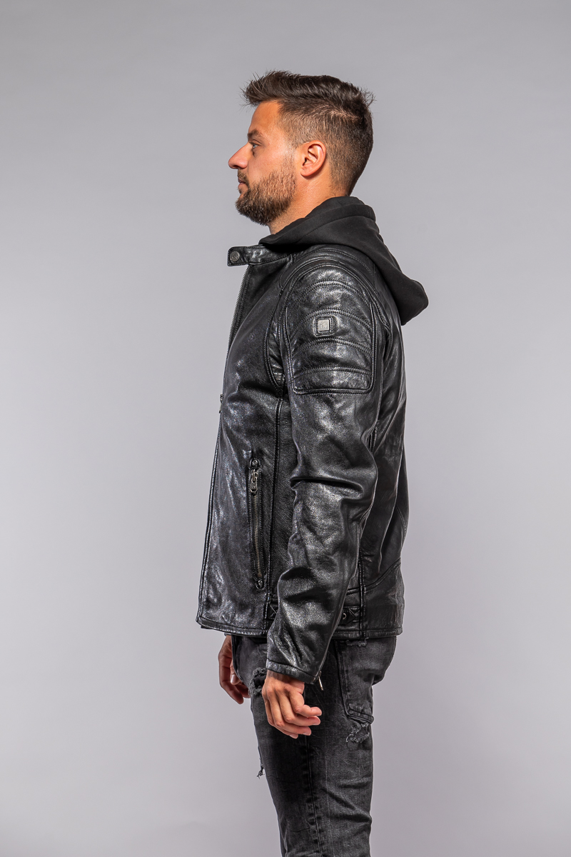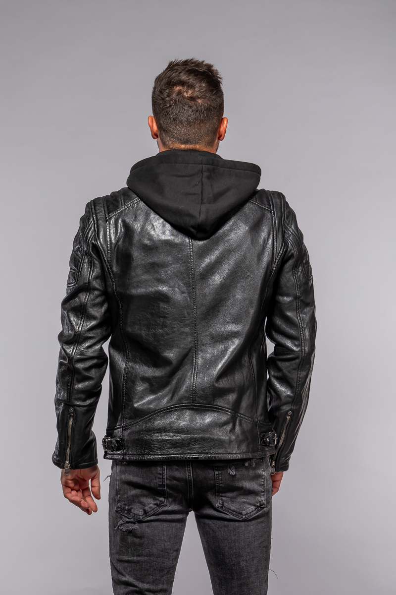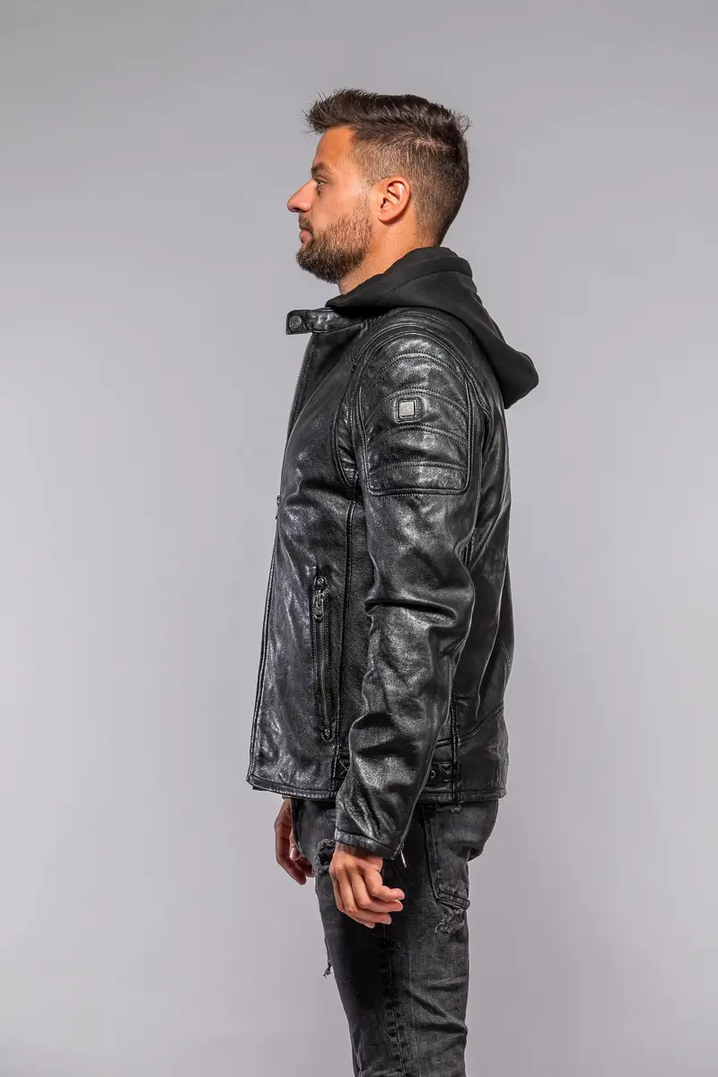Černá kožená pánská bunda s textilni kapucí MMRyxo DB Black