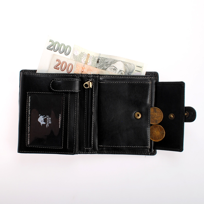 Černá kožená peněženka se zápinkou DIVOKY BYK