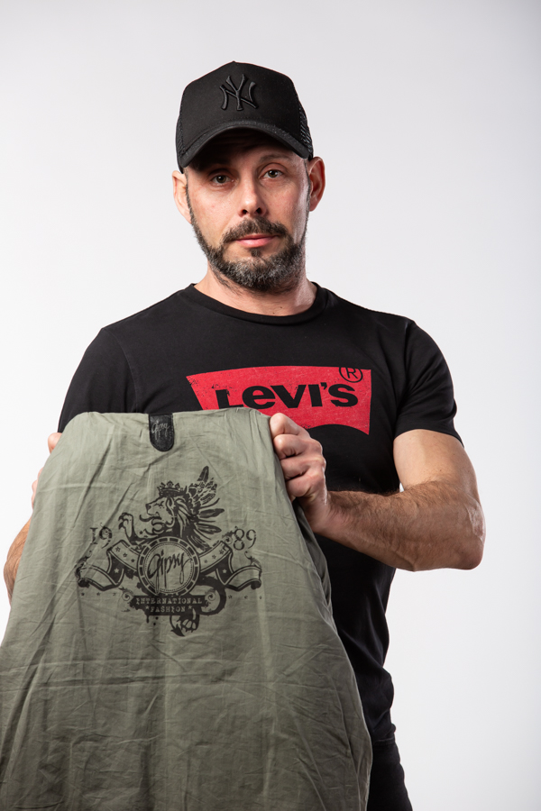 Model má na sobě oblečenou koženou bundu ve velikosti L a jeho míry jsou 176 cm a 76kg