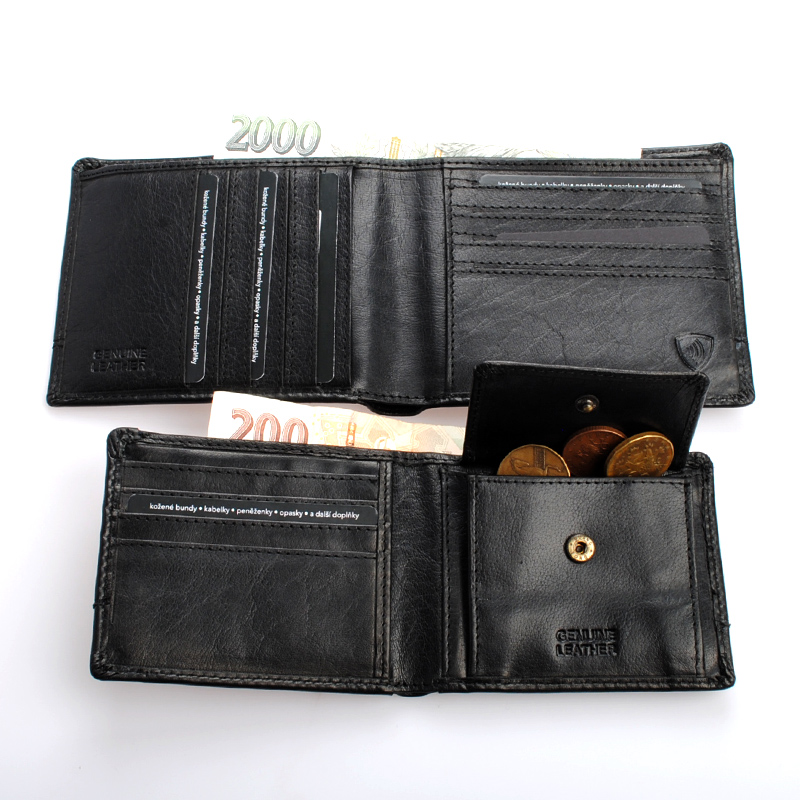 Tato pánská kožená peněženka je vyrobena ze 100%hovězí lícové kůže. RFID ochrana, kvalitní lícová kůže. Peněženka lze rozdělit na dvě peněženky. První větší má rozměry 12,5 x 10,5 x 3cm Do této samostatné peněženky lze vložit 9x karet a má jednu přihrádku na bankovky. Druhá kompaktnější peněženka je vhodná pro uložení nutných věcí a má rozměry 10,5 x 9 x 1,5cm a vložíte do ni 4 karty má také uzavíratelnou kapsu na mince a jednu přihrádku na bankovky.