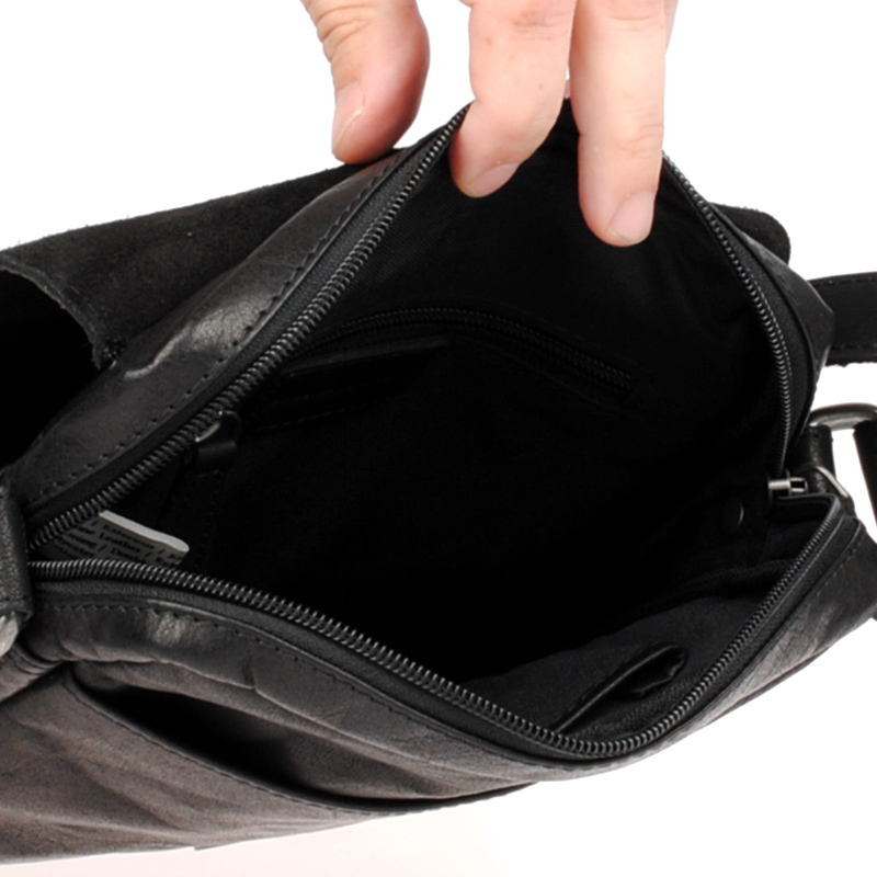 Tato praktická kožená taška naší výroby je vyrobena z prvotřídních materiálů. Je vhodná ke každodennímu použití. Hlavní přihrádka je uzavíratelná na zip. Uvnitř se skrývají poutka na pera a další přihrádka na zip. Toto crossbody je vybaveno nastavitelným textilním ramenním popruhem.
