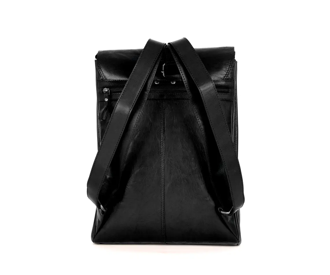 Černý cestovní kožený batoh na laptop 15,6 Spikes & Sparrow