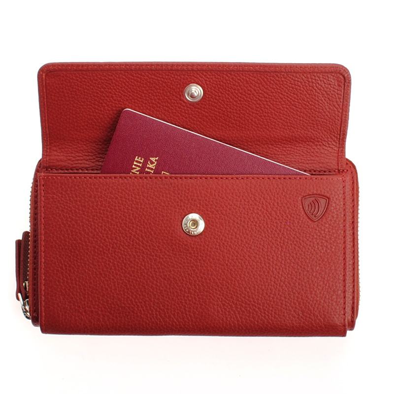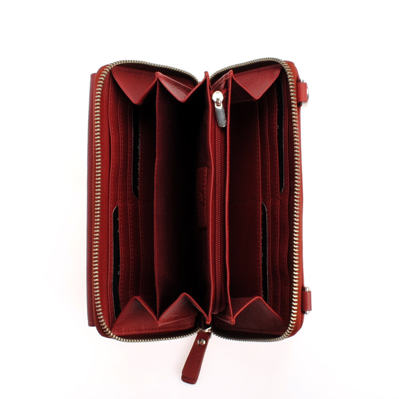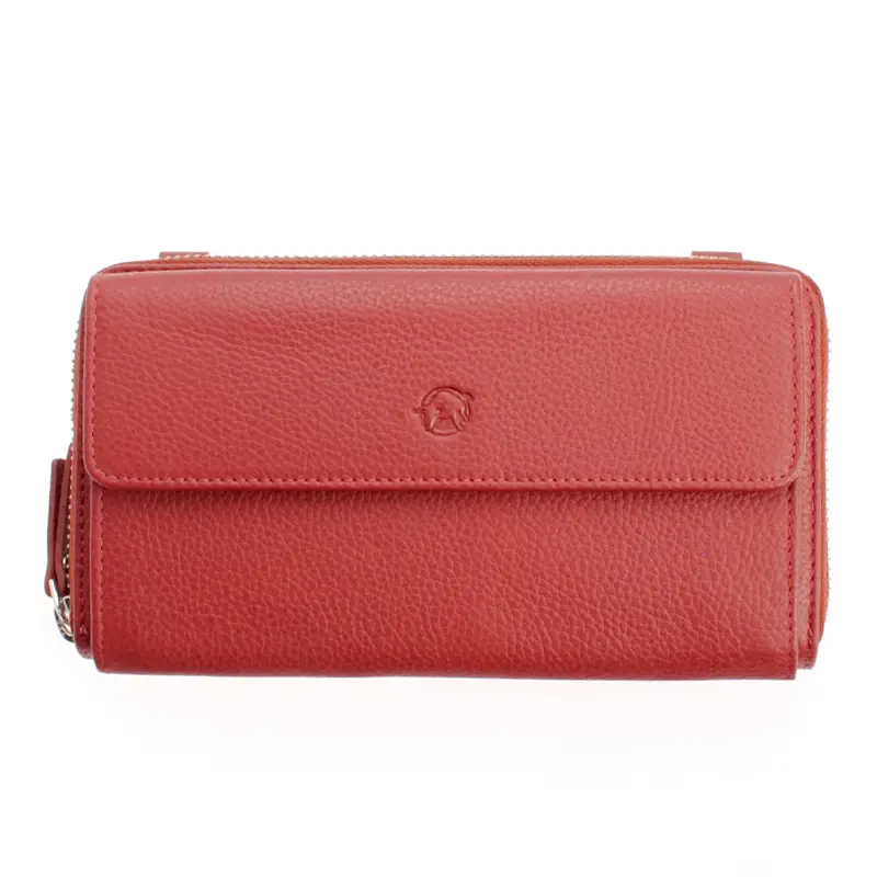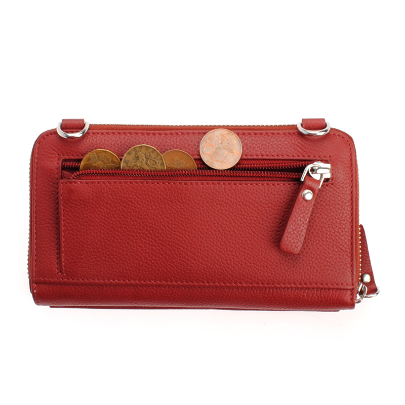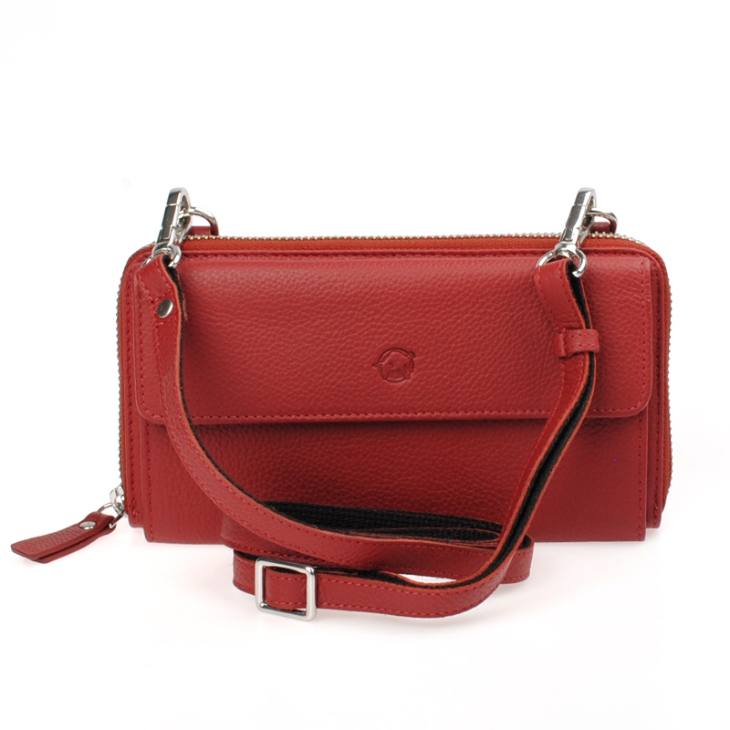 Tato kožená dámská peněženka je vyrobeno ze 100% hovězí lícové kůže. RFID ochrana, kvalitní lícová kůže, 5 přihrádek na bankovky, 3x kapsa na zip, 16 přihrádek na karty, kvalitní podšívka, nitě, druky. Do tohoto pouzdra se vejde i Váš cestovní pas. Popruh je nastavitelný o délce 120 cm. Do velké čelní kapsy můžete vložit váš mobil a díky odnímatelnému dlouhému popruhu můžete tuto peněženku nosit jako malou kabelku.
