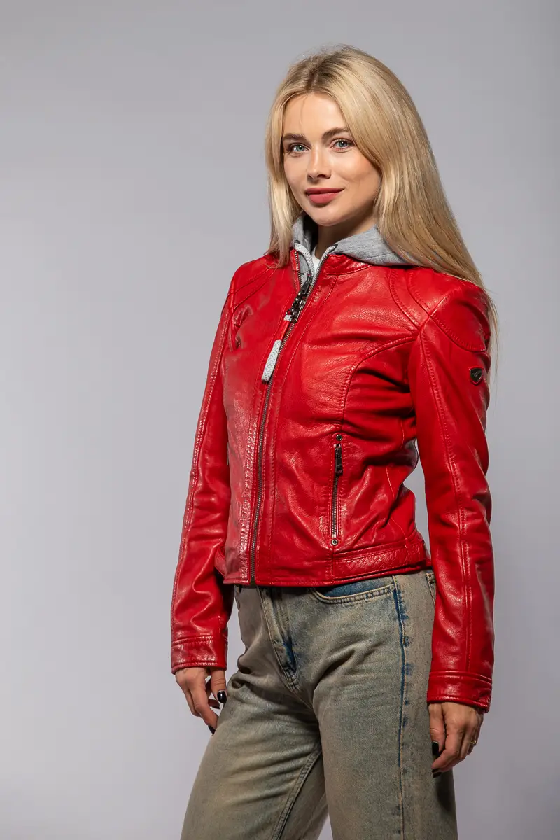 Dámská kožená bunda vyrobená ze 100% jehnětiny, střih Regular dobře padne. Bunda má textilní odepínací kapuci. Vybíráte koženou bundu? U býka najdete ty nejlepší kožené bundy. Obrovský výběr modelů a barev, bundy máme i v nadměrných velikostech. Navštivte nás v některé z našich prodejen, které máme v Praze, Plzni a v Ostravě. Všechny kožené bundy máme skladem!
