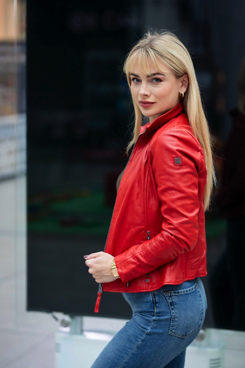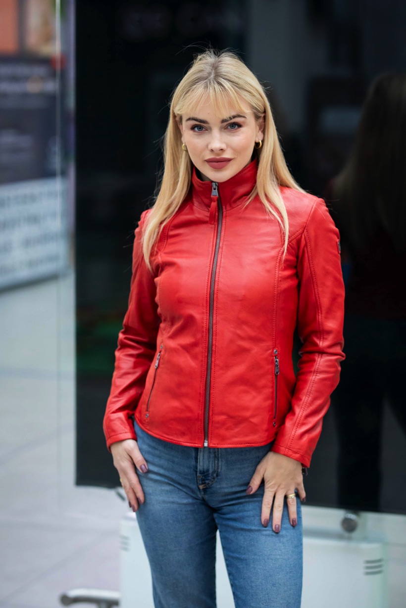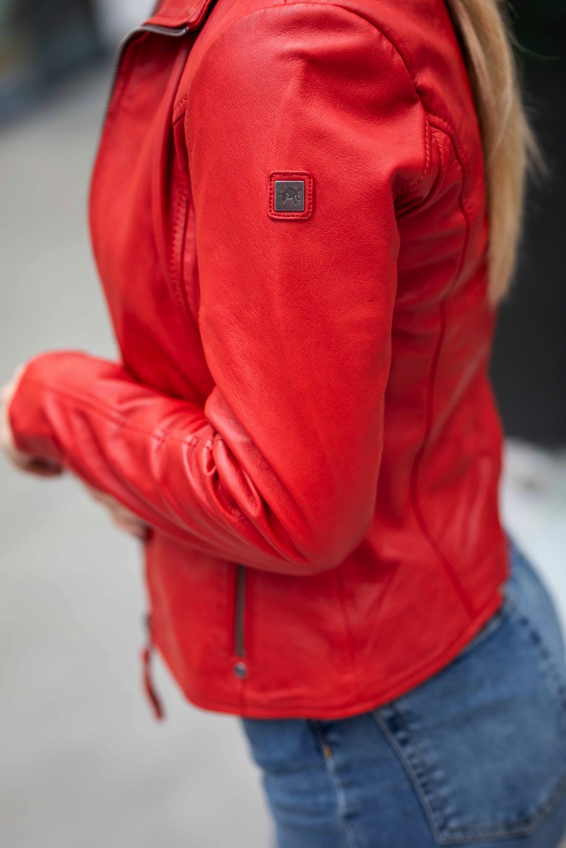 Dámská červená kožená bunda s límcem je vyrobena ze 100% jehnětiny. Jednoduchá, nadčasová, kožená bundička. Střih Regular krásně sedne. Naše top bunda Divoký býk z kvalitní lícové kůže. Tato je bunda je náš originální produkt.