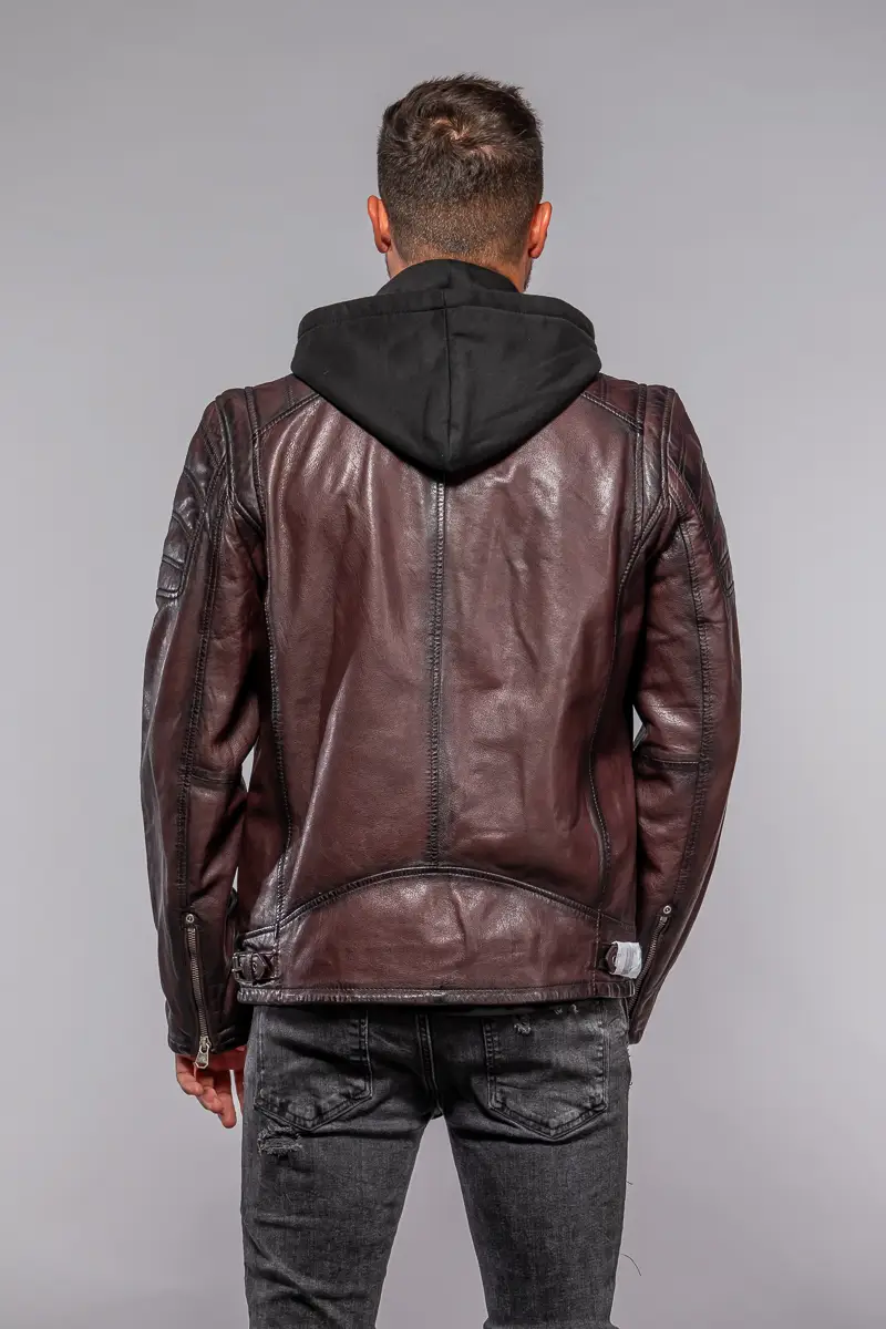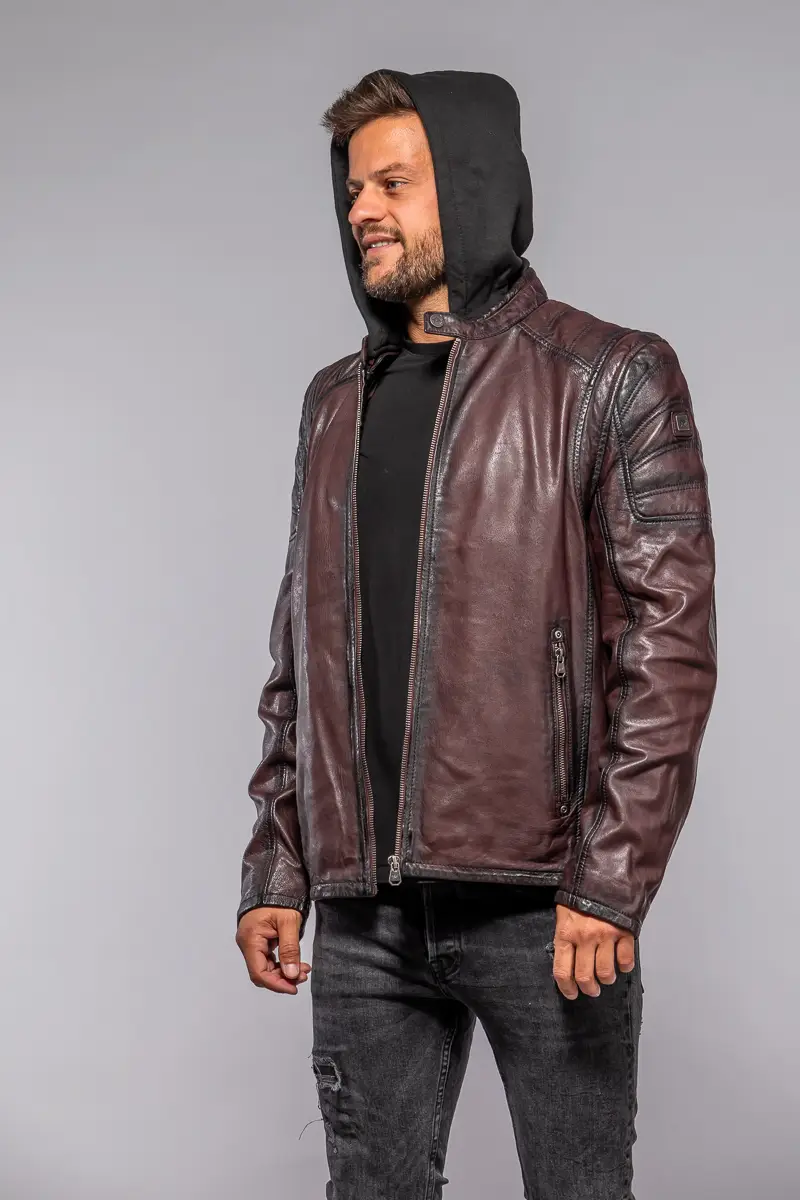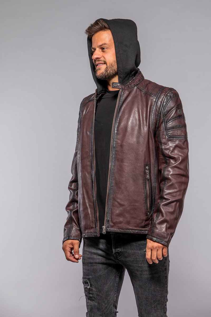 Červená kožená pánská bunda s textilni kapucí MMRyxo DB OxRed