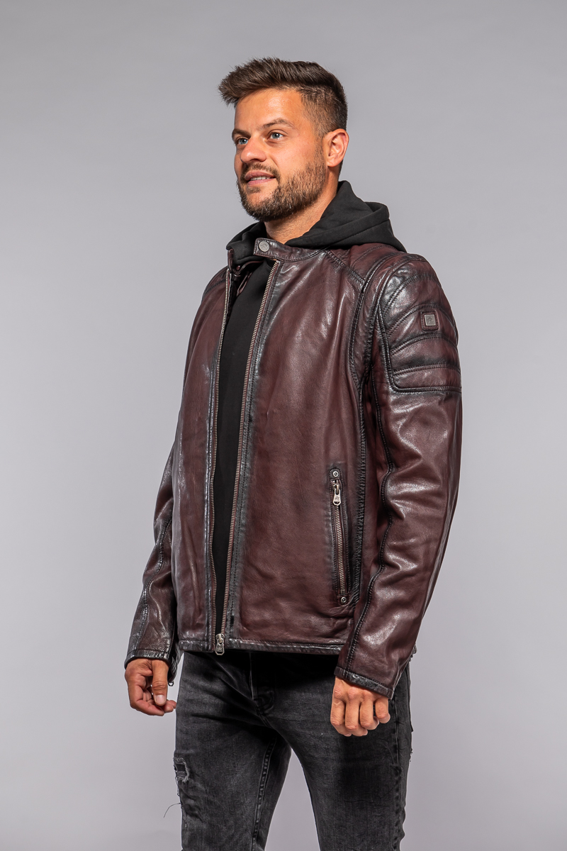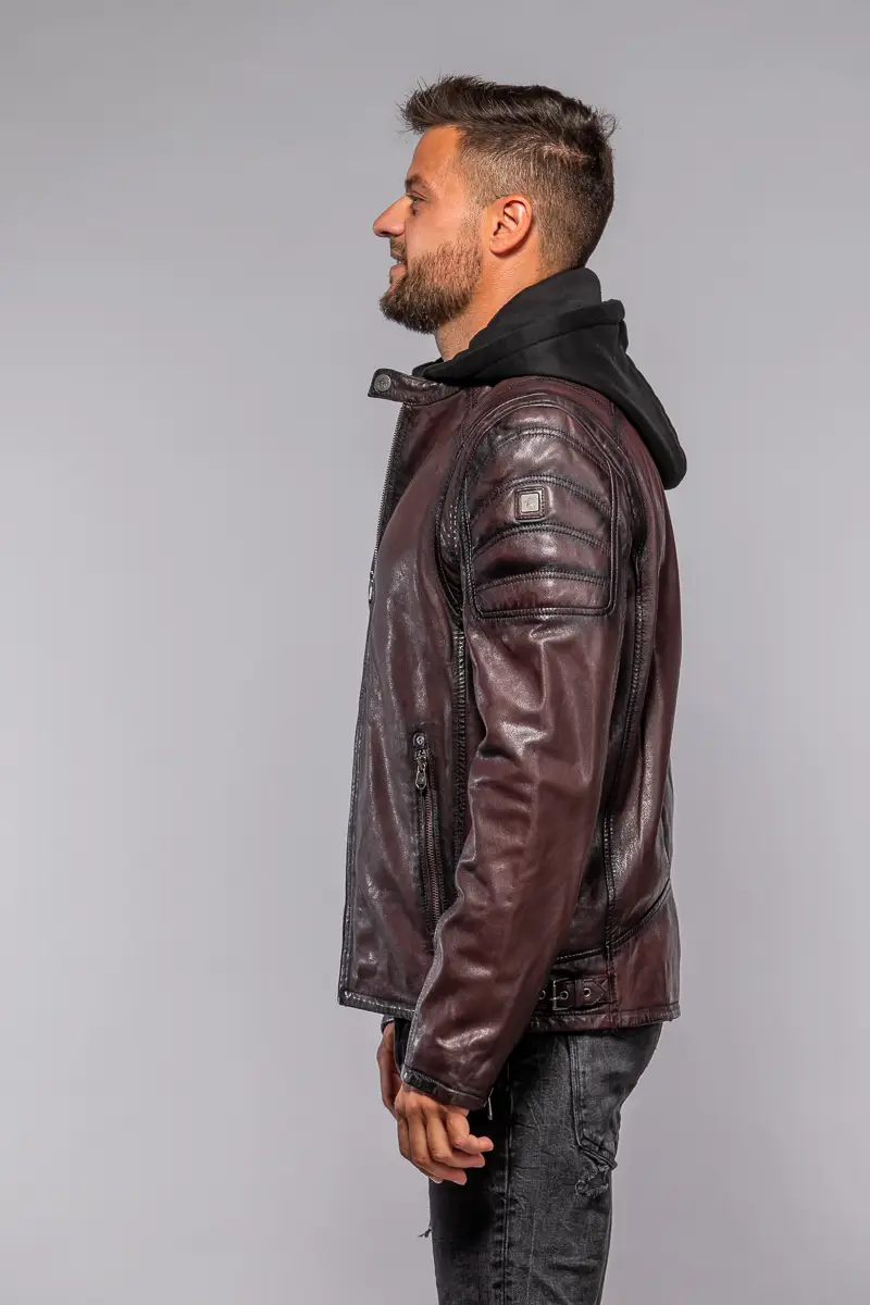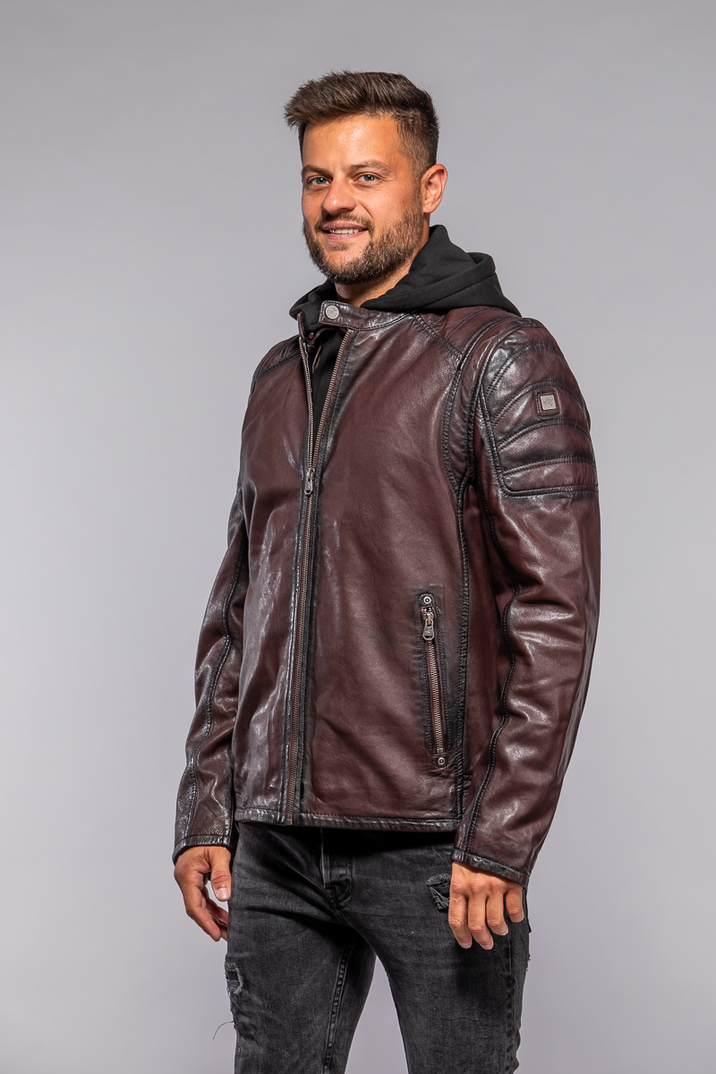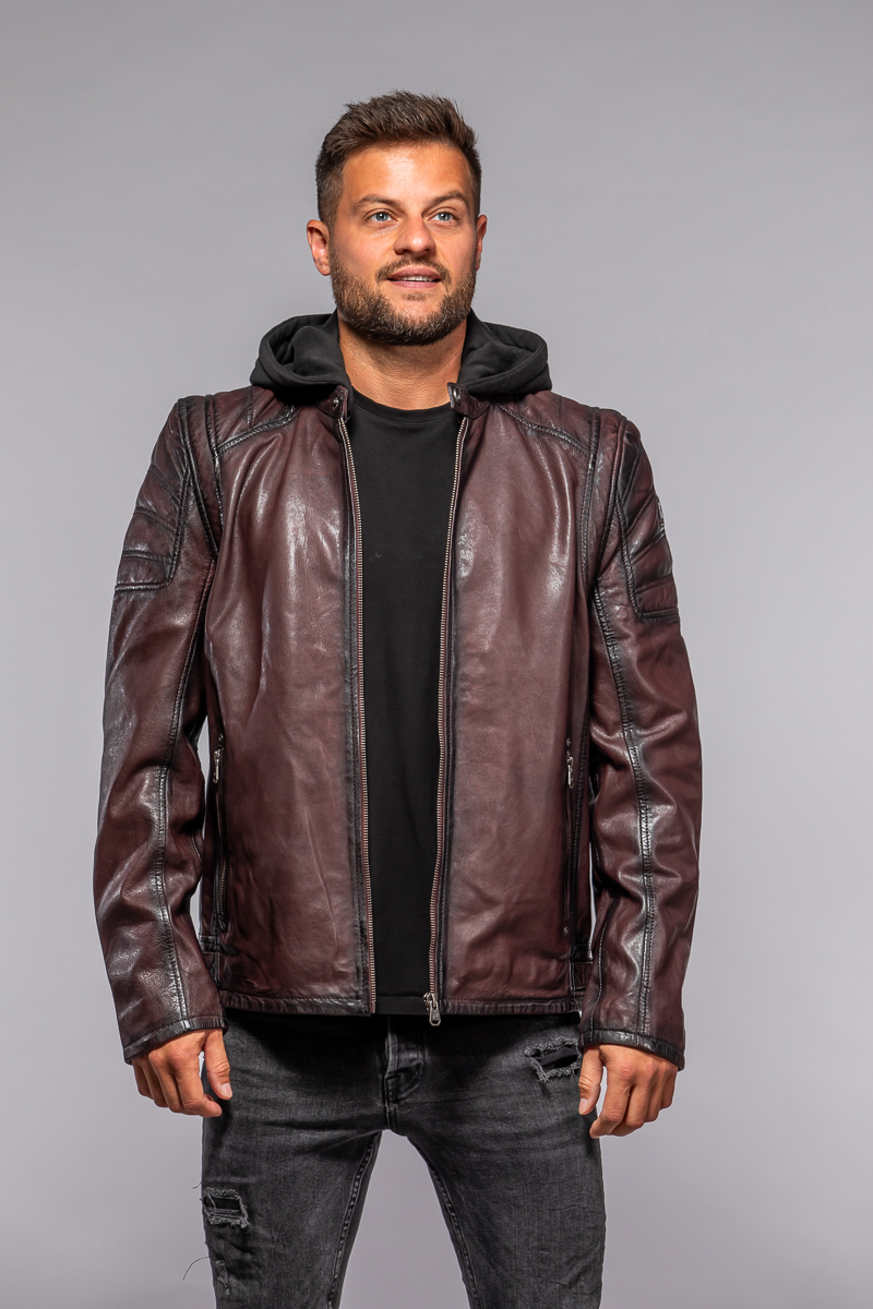 Červená kožená pánská bunda s textilni kapucí MMRyxo DB OxRed