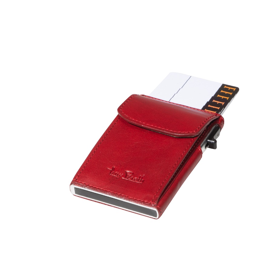 Toto kompaktní pouzdro na karty Tony Perotti je vyrobeno z přírodní kůže. Hliníkové pouzdro je vloženo do přebalu z kvalitní kůže s kapsičkou na mince a schránkou pro jednu kartu. Do tohoto pouzdra lze tedy celkově vložit 7 karet. Celá peněženka je chráněna RFID ochranou, která zabraňuje neoprávněnému přístupu k bezkontaktním kartám.