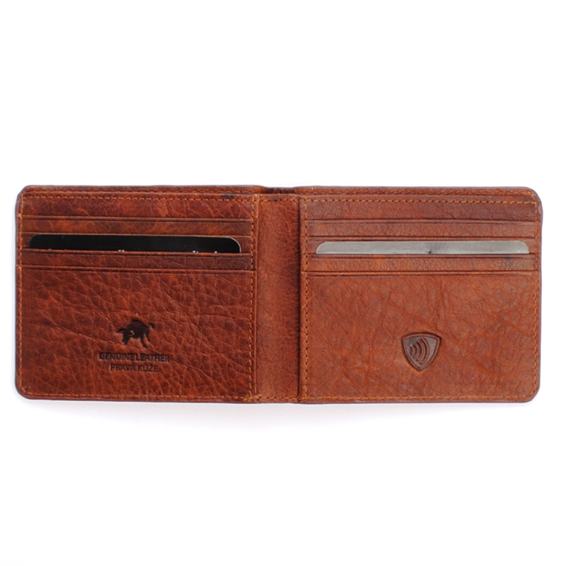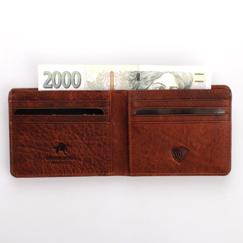 Tato pánská kožená peněženka je vyrobena ze 100%hovězí lícové kůže. RFID ochrana, kvalitní lícová kůže. Peněženka má 2 přihrádky na standardní české bankovky, 8 přihrádek na karty a doklady, kvalitní podšívka, nitě, druky.