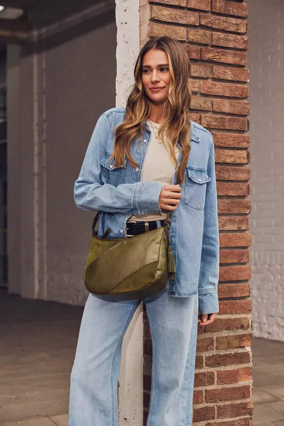 Dámská crossbody kabelka Spikes & Sparrow „Lorain“ kombinuje poddajnou kůži s měkkým semišem pro luxusní a hřejivý vzhled. Zelená barva, diagonální linie a hravé kožené třásně dodávají této kožené crossbody kabelce ženský a moderní vzhled. Její kompaktní velikost nabízí dostatek prostoru pro vaše každodenní nezbytnosti. Díky nastavitelnému ramennímu popruhu můžete kabelku pohodlně nosit celý den. Vysoce kvalitní kůže si časem vytvoří jedinečný charakter, díky čemuž je každá kabelka osobnější.