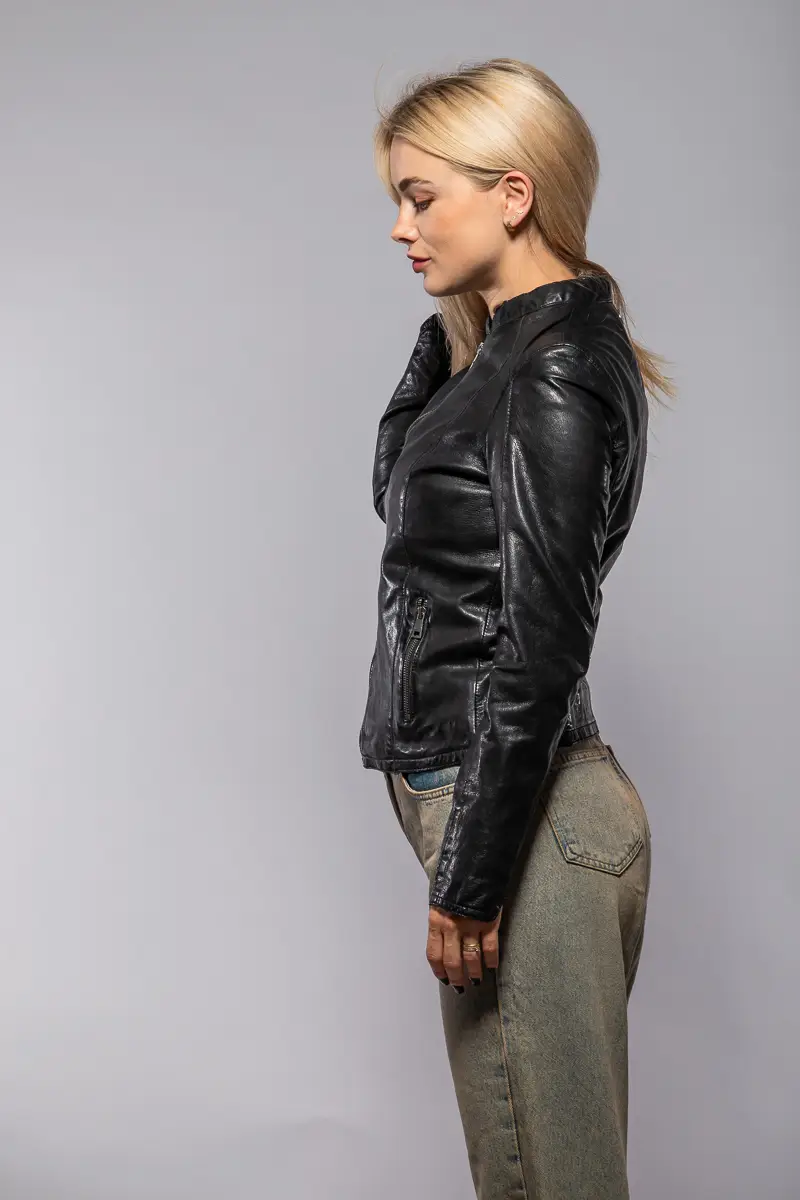 Dámská černá kožená bunda je vyrobena ze 100% jehnětiny. Jednoduchá, nadčasová, lehká, kožená bundička. Střih Regular dobře padne, bunda je vhodná jak pro jarní tak i letní období.