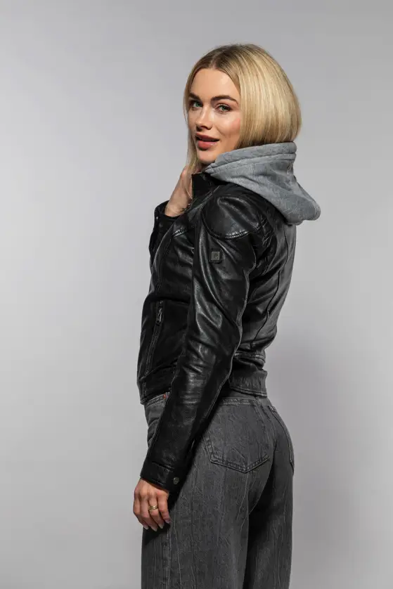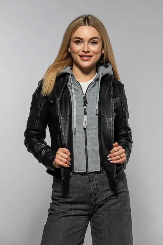 Dámská kožená bunda vyrobená ze 100% jehnětiny, střih Regular, který dobře padne. Bunda má textilní odepínací kapuci. Vybíráte koženou bundu? U býka najdete ty nejlepší kožené bundy. Obrovský výběr modelů a barev, bundy máme i v nadměrných velikostech. Navštivte nás v některé z našich prodejen, které máme v Praze, Plzni a v Ostravě. Všechny kožené bundy máme skladem!