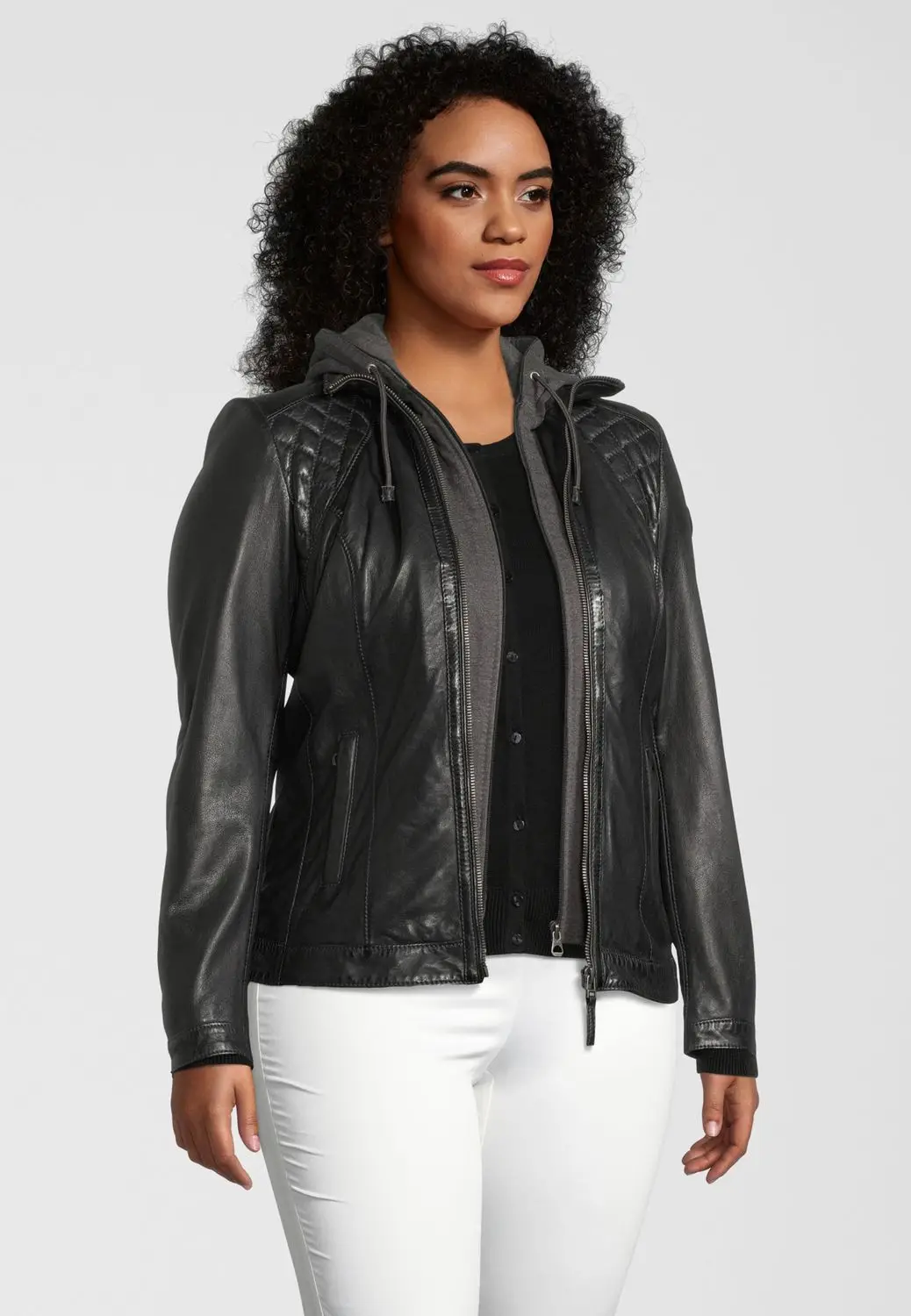 Dámská černá kožená vyrobená ze 100% jehnětiny. Bunda má odnimatelnou textilní kapuci a je vypasovaná v bocích. Bunda je ve střihu Regular. Sedí i výraznější postavě, přitom se jedná o moderní lehkou koženou bundu. Vybíráte koženou bundu? U býka najdete kožené bundy předních evropských výrobců Gipsy a Derrcraft. Obrovský výběr modelů i barev, bundy máme i v nadměrných velikostech. Navštivte nás v některé z našich prodejen, které máme v Praze, Plzni a v Ostravě. Všechny kožené bundy máme skladem!
