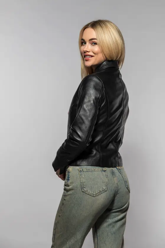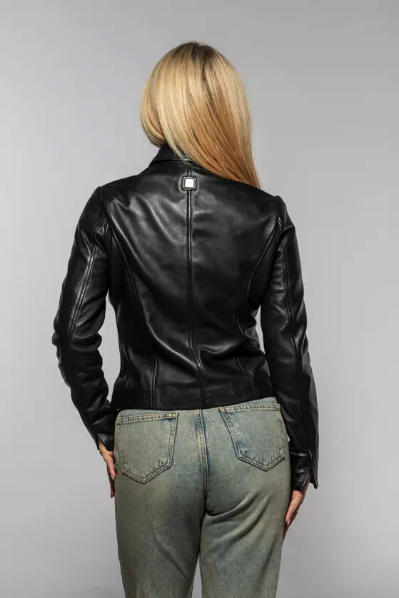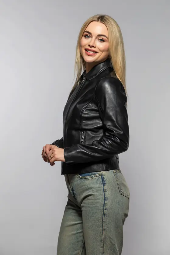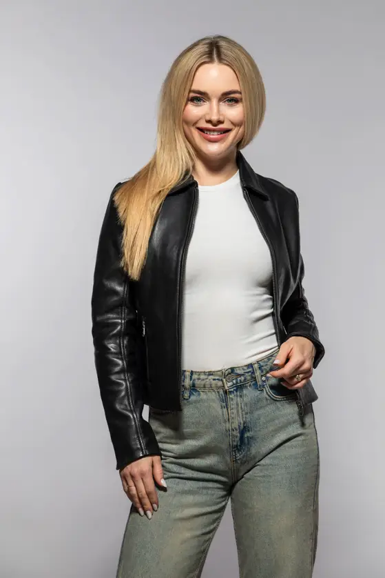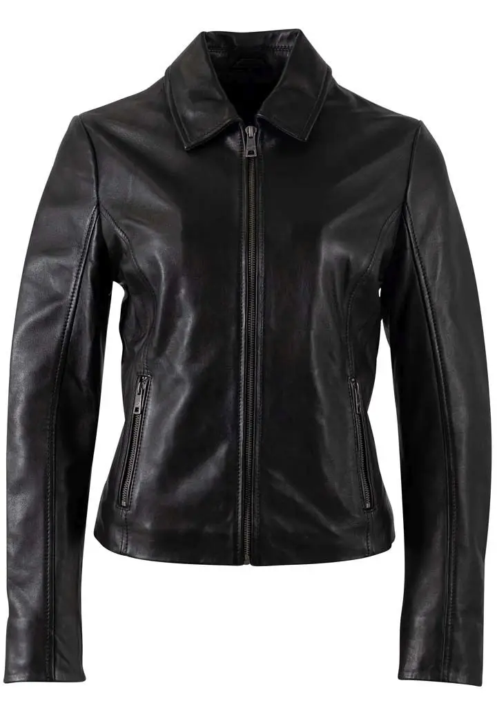Dámská černá kožená bunda s límcem je vyrobena ze 100% jehnětiny. Jednoduchá, nadčasová, kožená bundička. Střih Regular-Fit pro běžné postavy, kvalitní lícová kůže včetně zpracování. Tato je bunda je náš originální produkt.