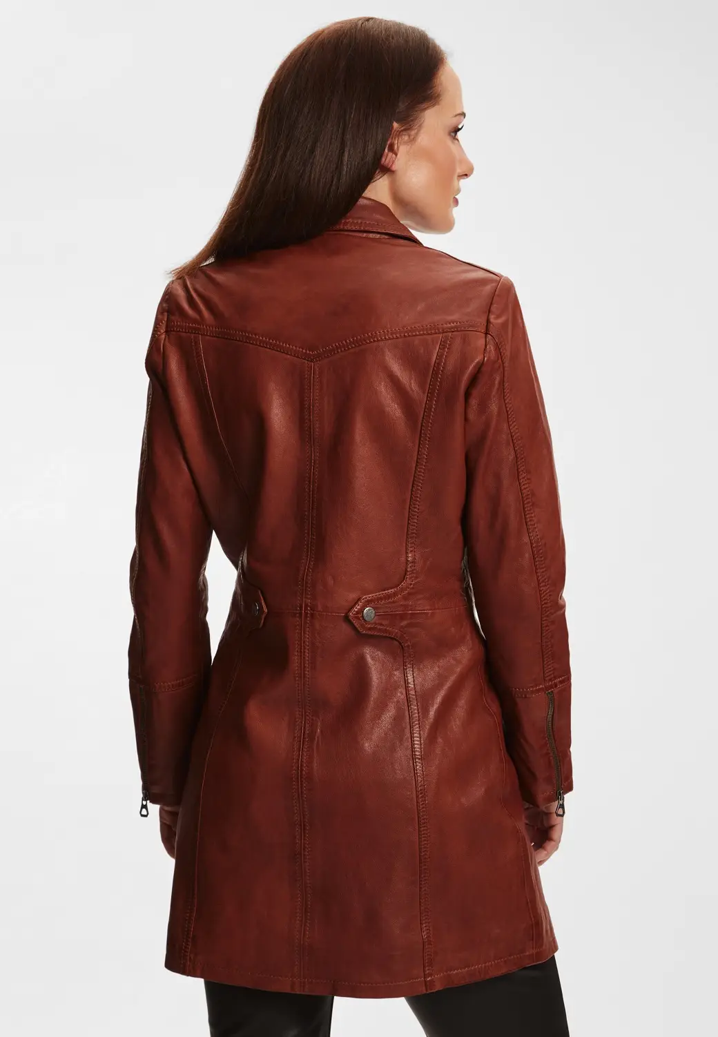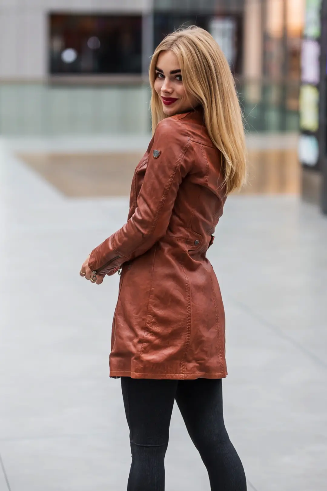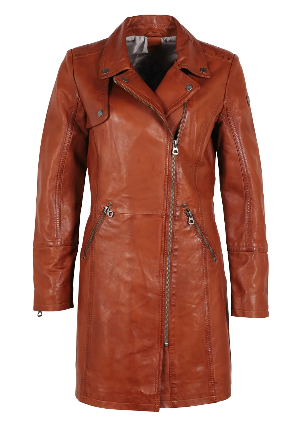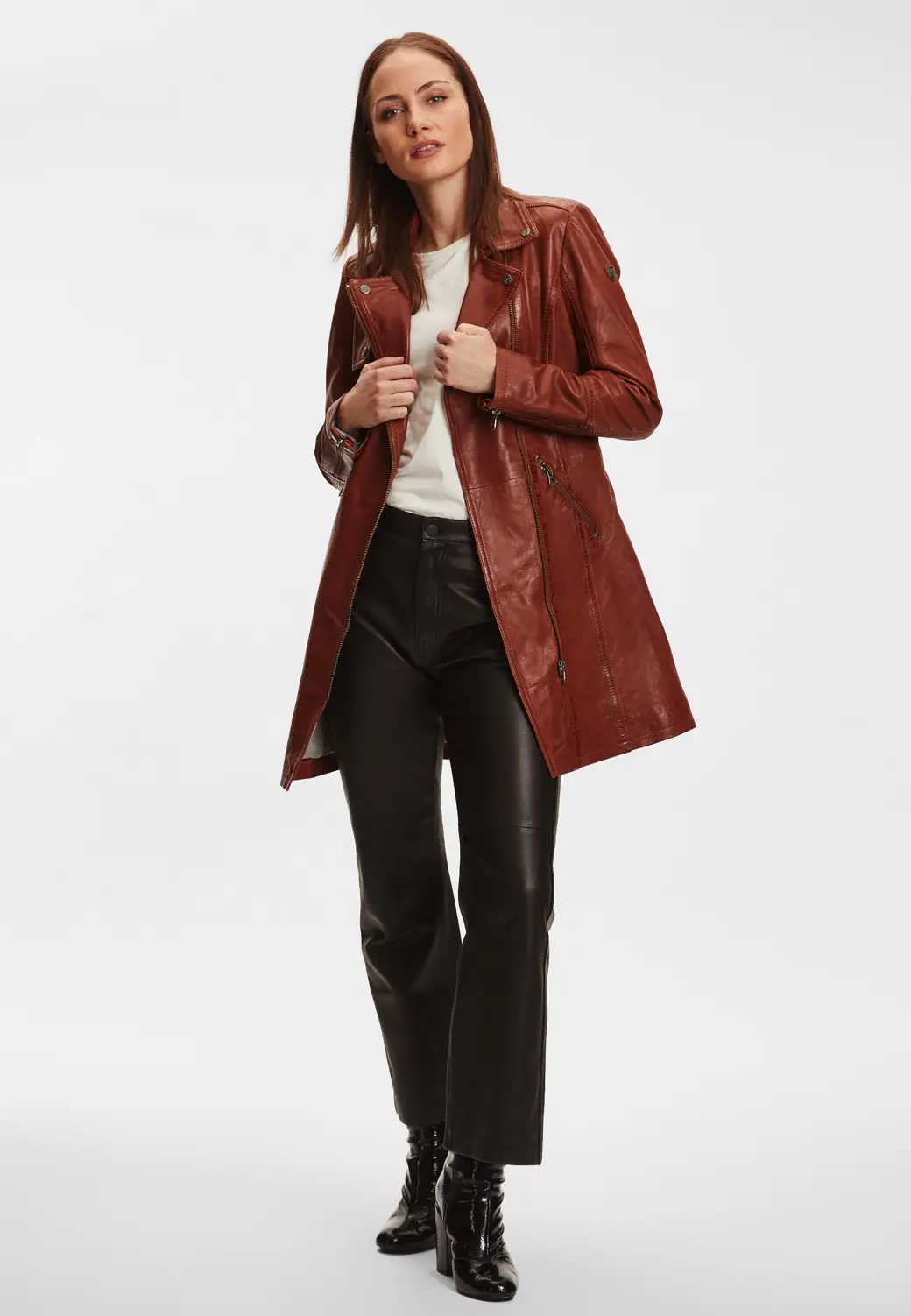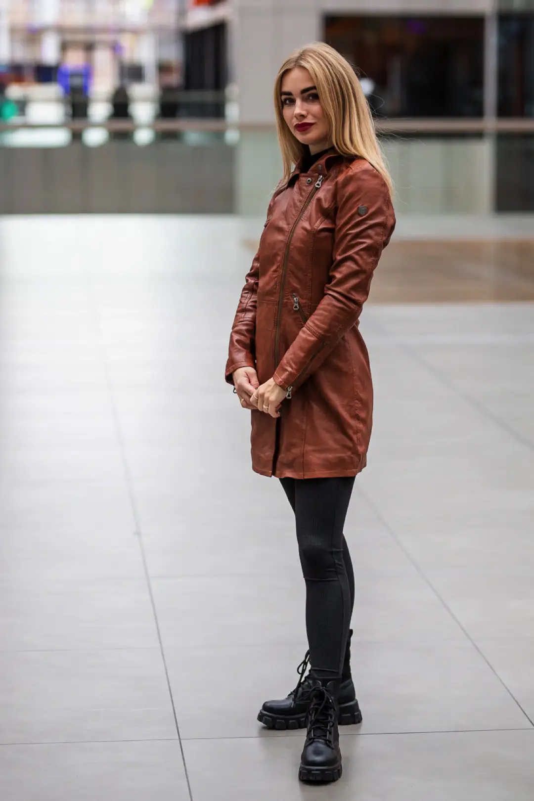 Tento kožený dámský kabát je vyroben ze 100% jehnětiny, střih Regular a sahá do půlky stehen. Vybíráte koženou bundu? U býka najdete kožené bundy předních evropských výrobců Gipsy a Derecraft. Obrovský výběr modelů i barev, bundy máme i v nadměrných velikostech. Navštivte nás v některé z našich prodejen, které máme v Praze, Plzni a v Ostravě. Všechny kožené bundy máme skladem!