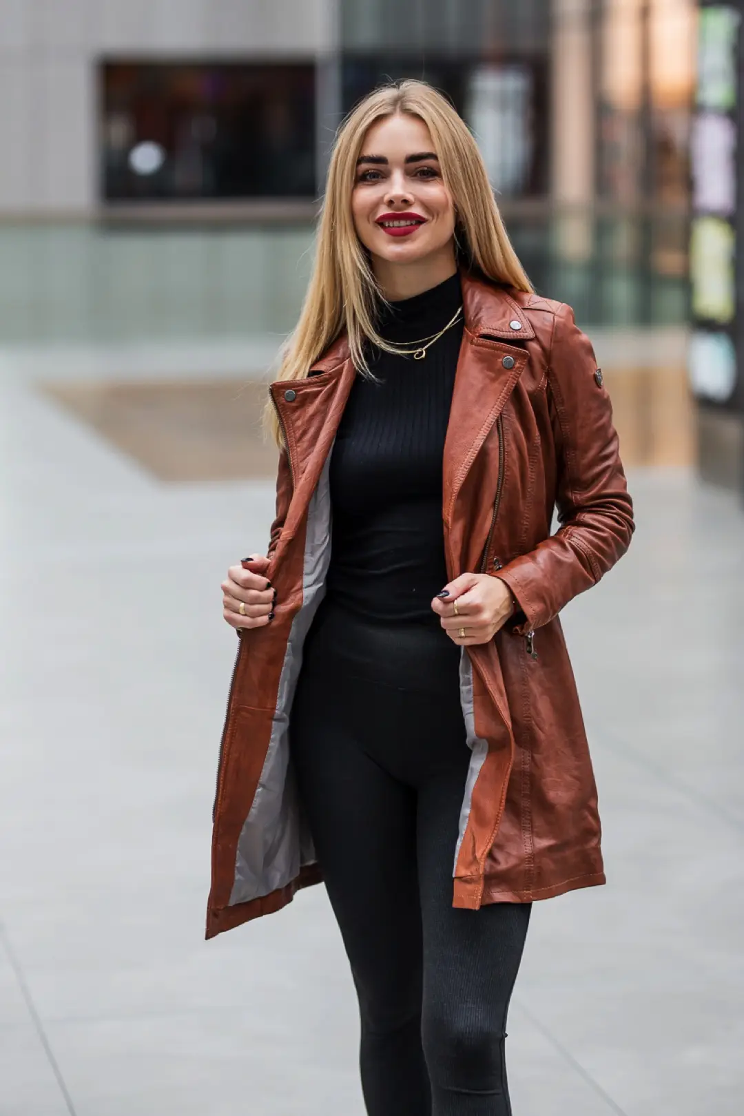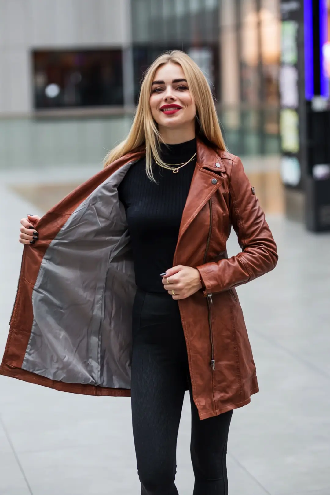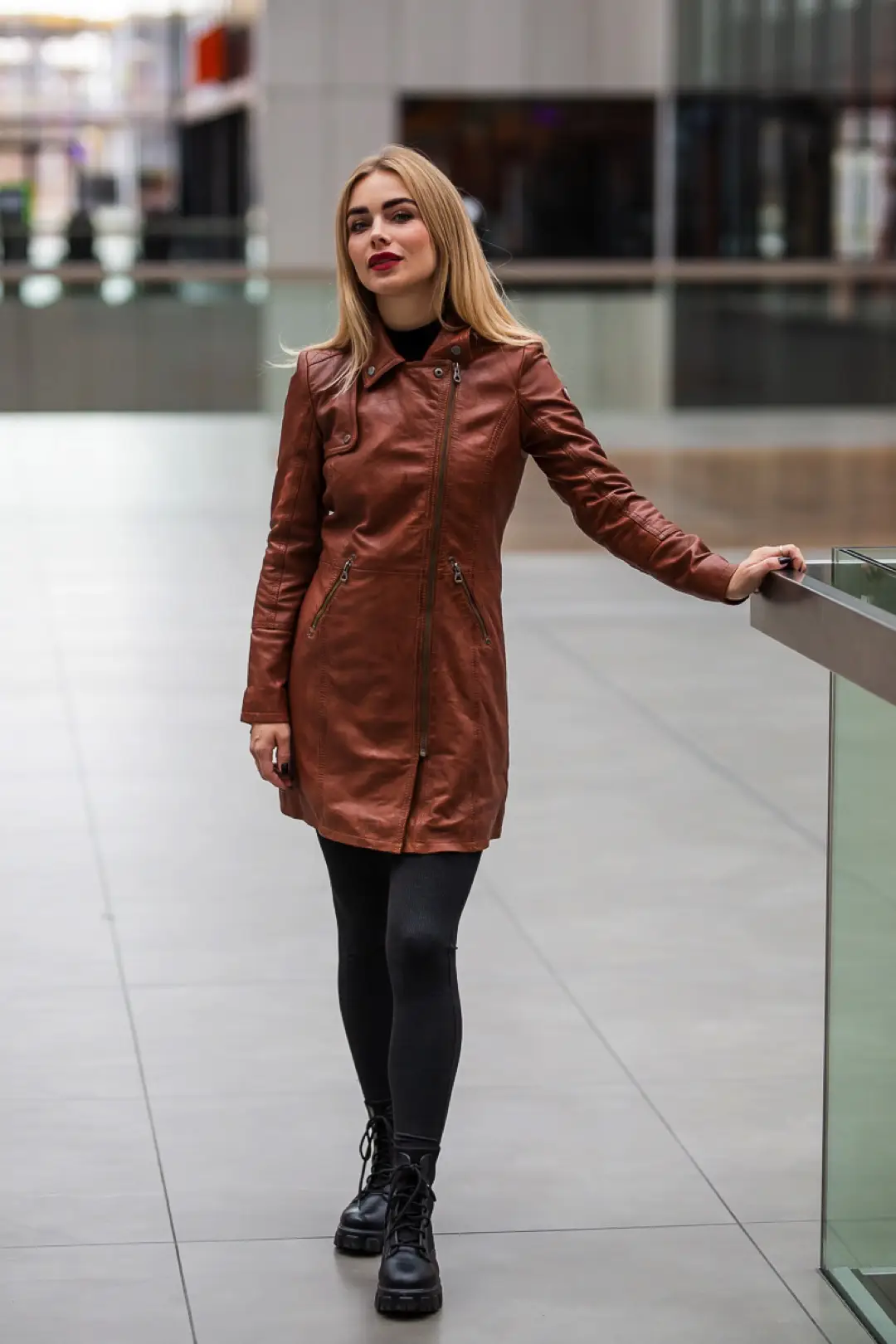 Dotaz k produktu - Dámský cognac kožený kabát GWCARO - velké velikosti