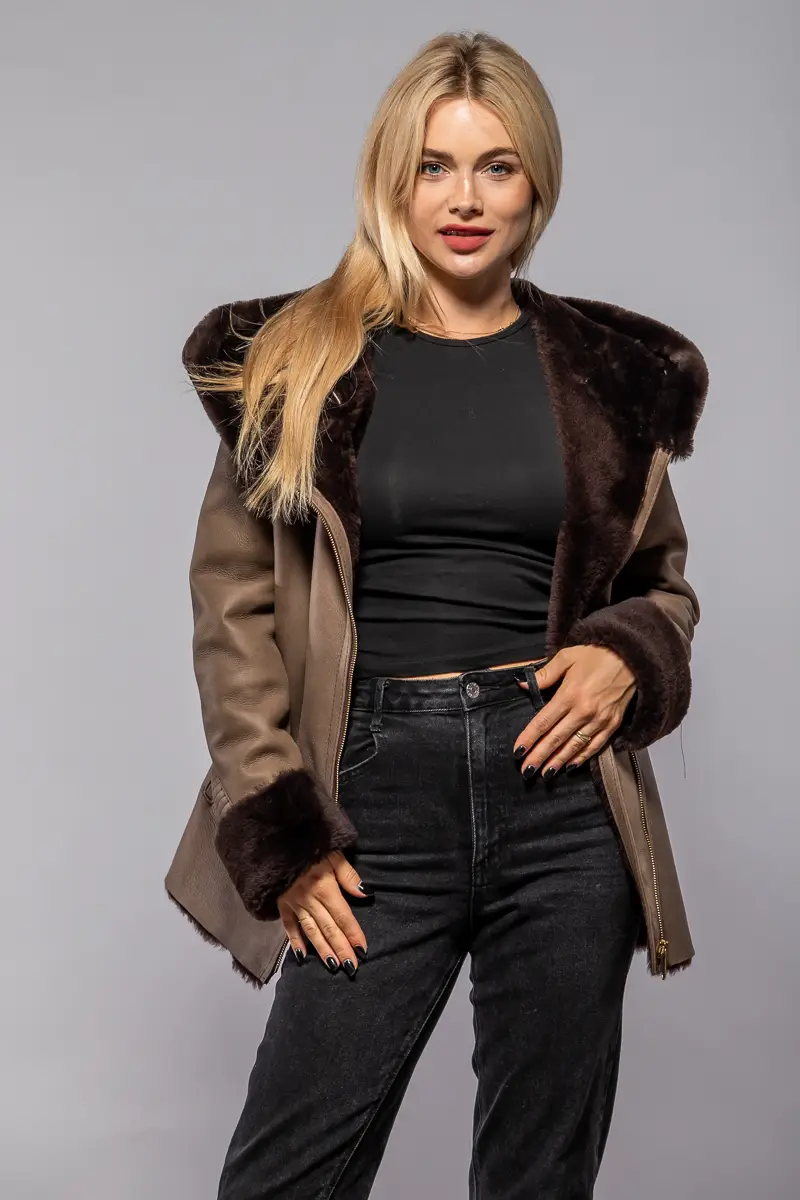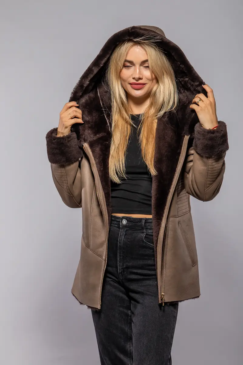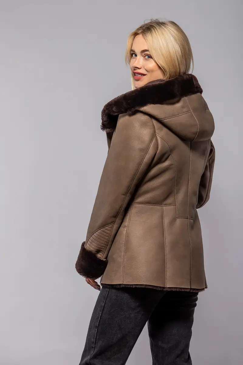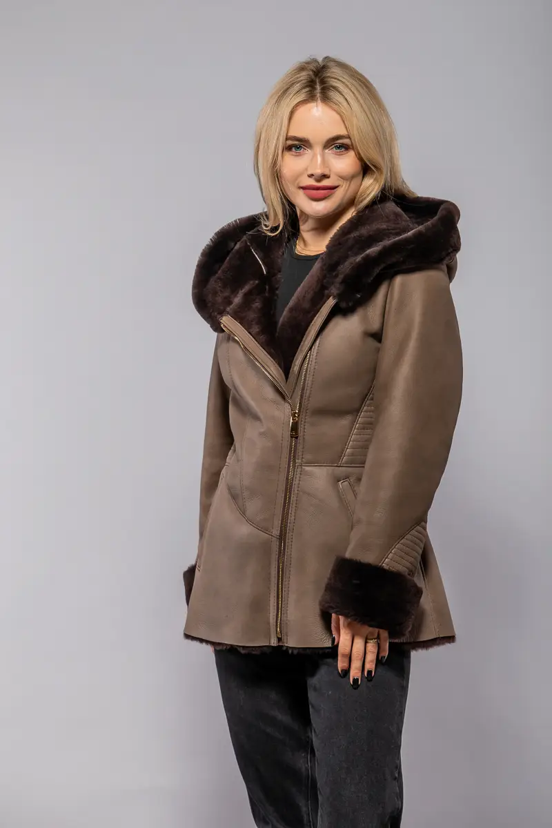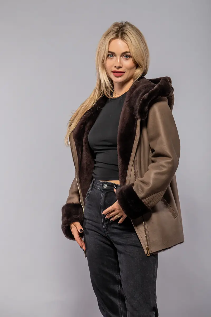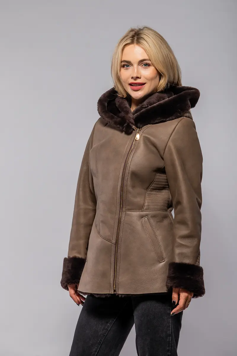 Luxusní kratší dámský kožich z velmi příjemného a lehkého materiálu-beránek, Barva šedá.