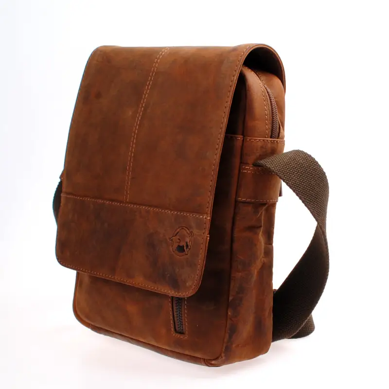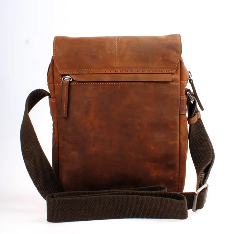 Tato praktická kožená taška naší výroby je vyrobena z prvotřídních materiálů. Je vhodná ke každodennímu použití. Hlavní přihrádka je uzavíratelná na zip. Uvnitř se skrývají poutka na pera a další přihrádka na zip. Toto crossbody je vybaveno nastavitelným textilním ramenním popruhem.