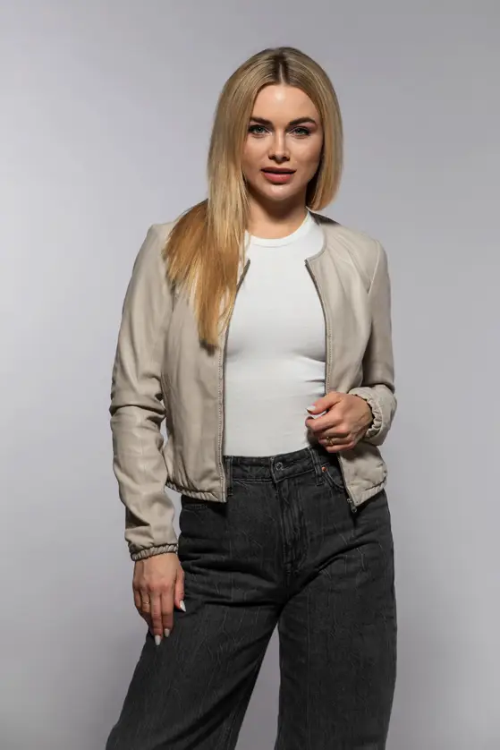Tato béžová kožená bunda je vyrobena ze 100% jehnětiny. Jednoduchá, nadčasová, lehká, kožená bundička. Elegantní model, střih Regular. Tato je bunda je náš originální produkt. Vybíráte koženou bundu?