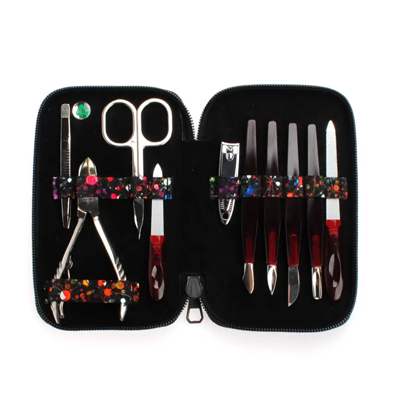Manikúrní sada 10-ti dílná z barevné kůže se uzavírá zipem