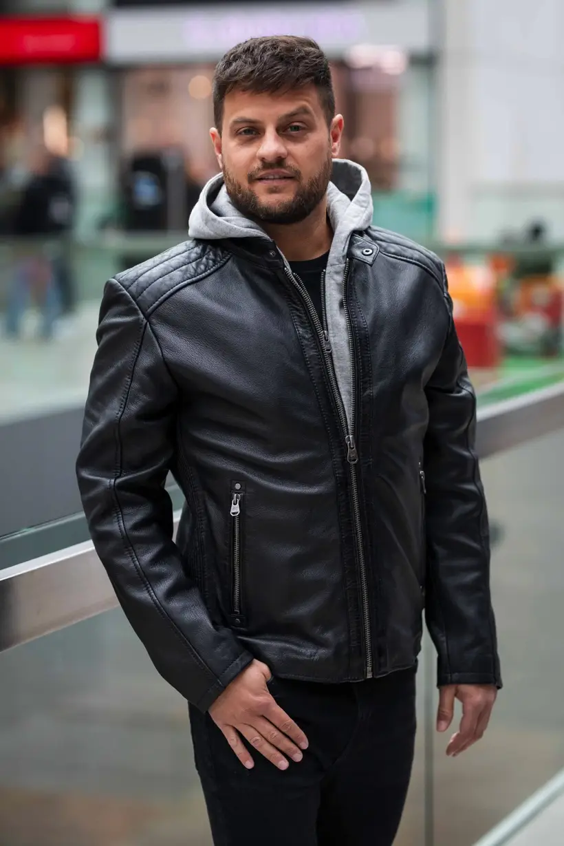 Pánská moderní kožená bunda značky Divoký býk v černé barvě s odnímatelnou kapucí. Tato bunda je z kvalitního materiálu ze 100% jehnětiny. Parádní kus, střih Comfort ve velikostech 50 až 64. Vybíráte koženou bundu? Tak proč ne bundu od nás? Obchodujeme v tomto oboru již od roku 1992 a jsme přesvědčeni, že u těchto produktů je absolutně nejlepší poměr cena/výkon. Nejlepší zipy, druky, karabiny, podšívky, perfektně vyčiněná lícová kůže. Toto ocení všichni, kteří mají rádi opravdovou kvalitu. Nechcete nakupovat přes e-shop? Přijďte si vybrat tu správnou barvu, velikost, model do některé z našich prodejen, které máme v Praze, Plzni, Ostravě. Vše máme skladem.
