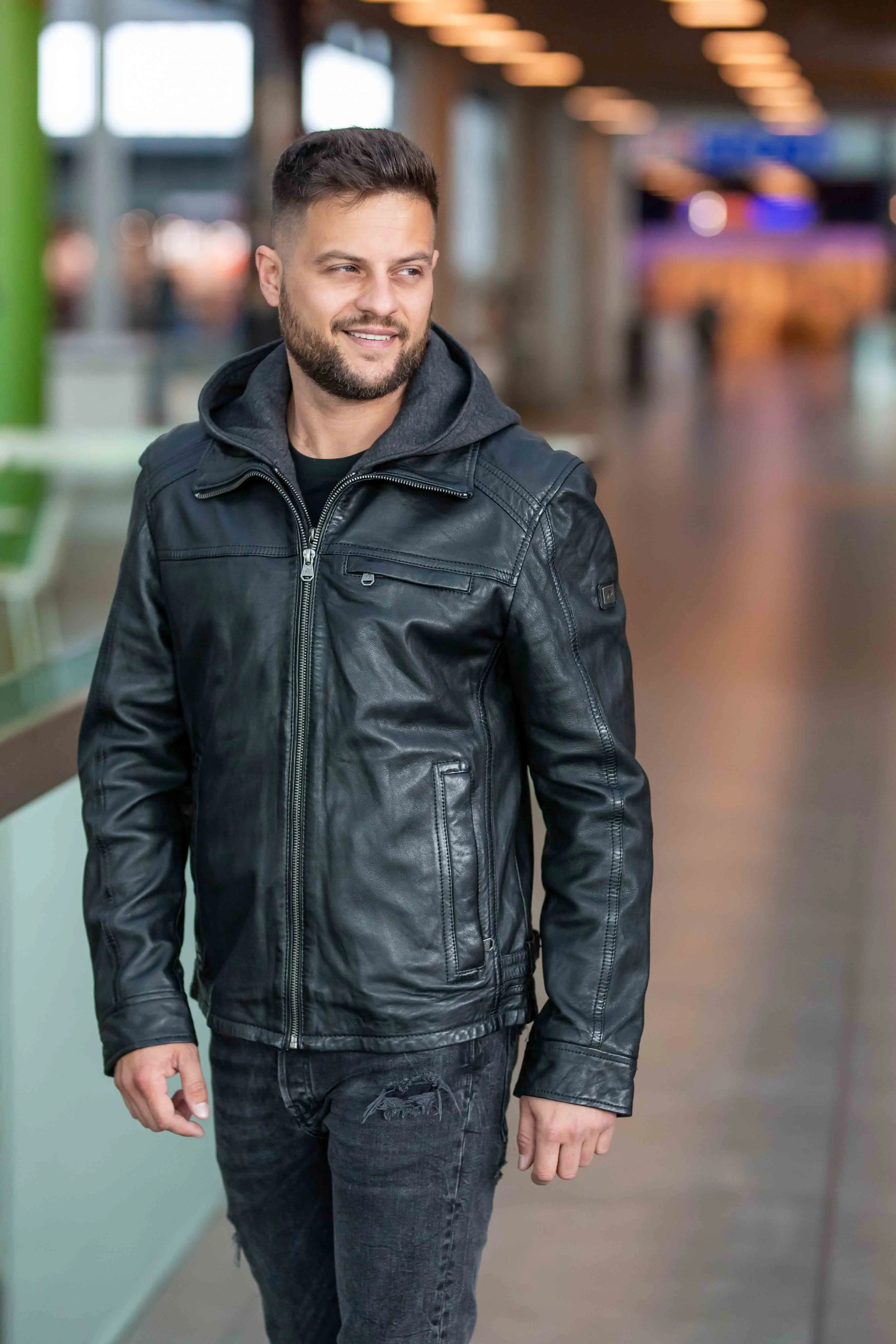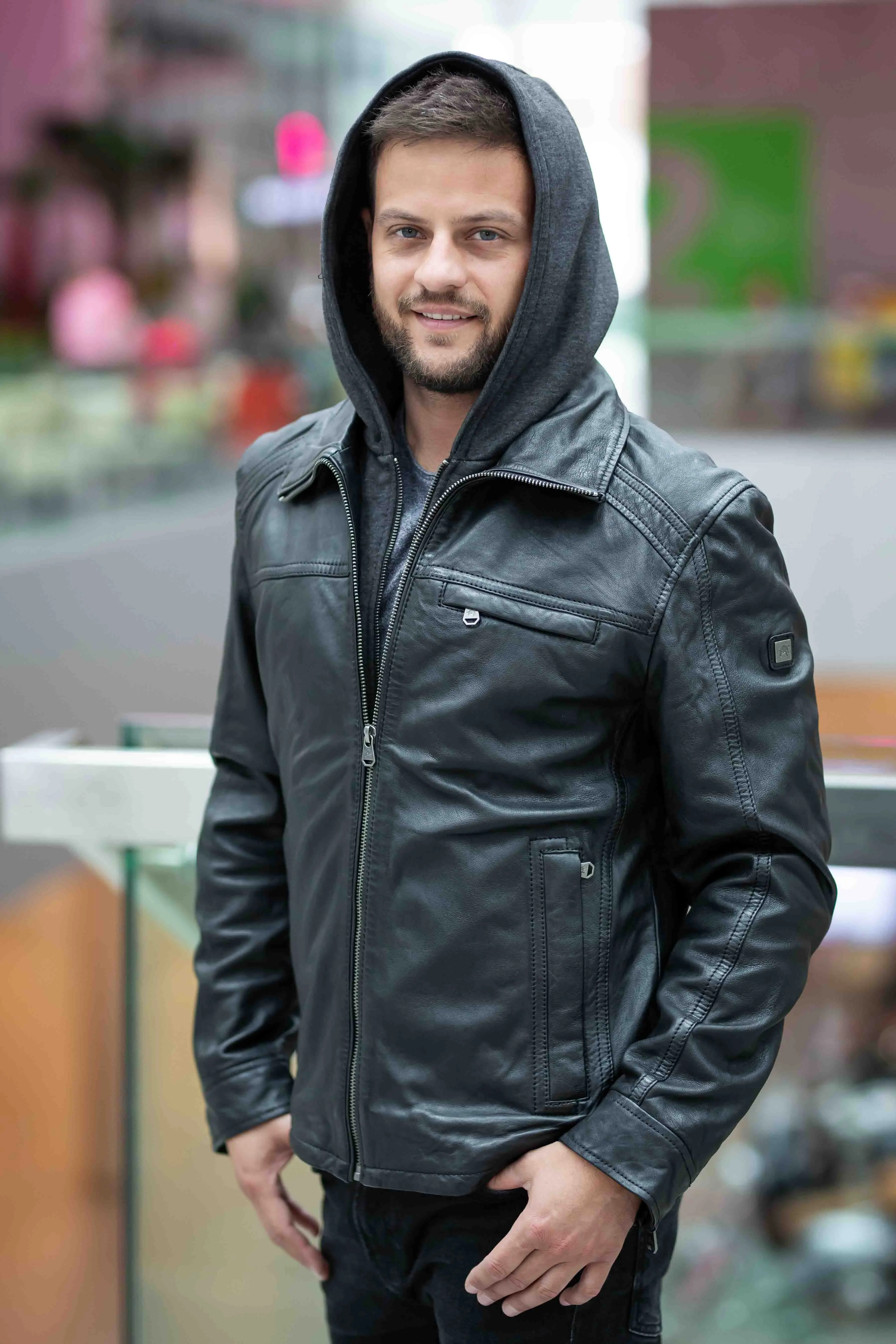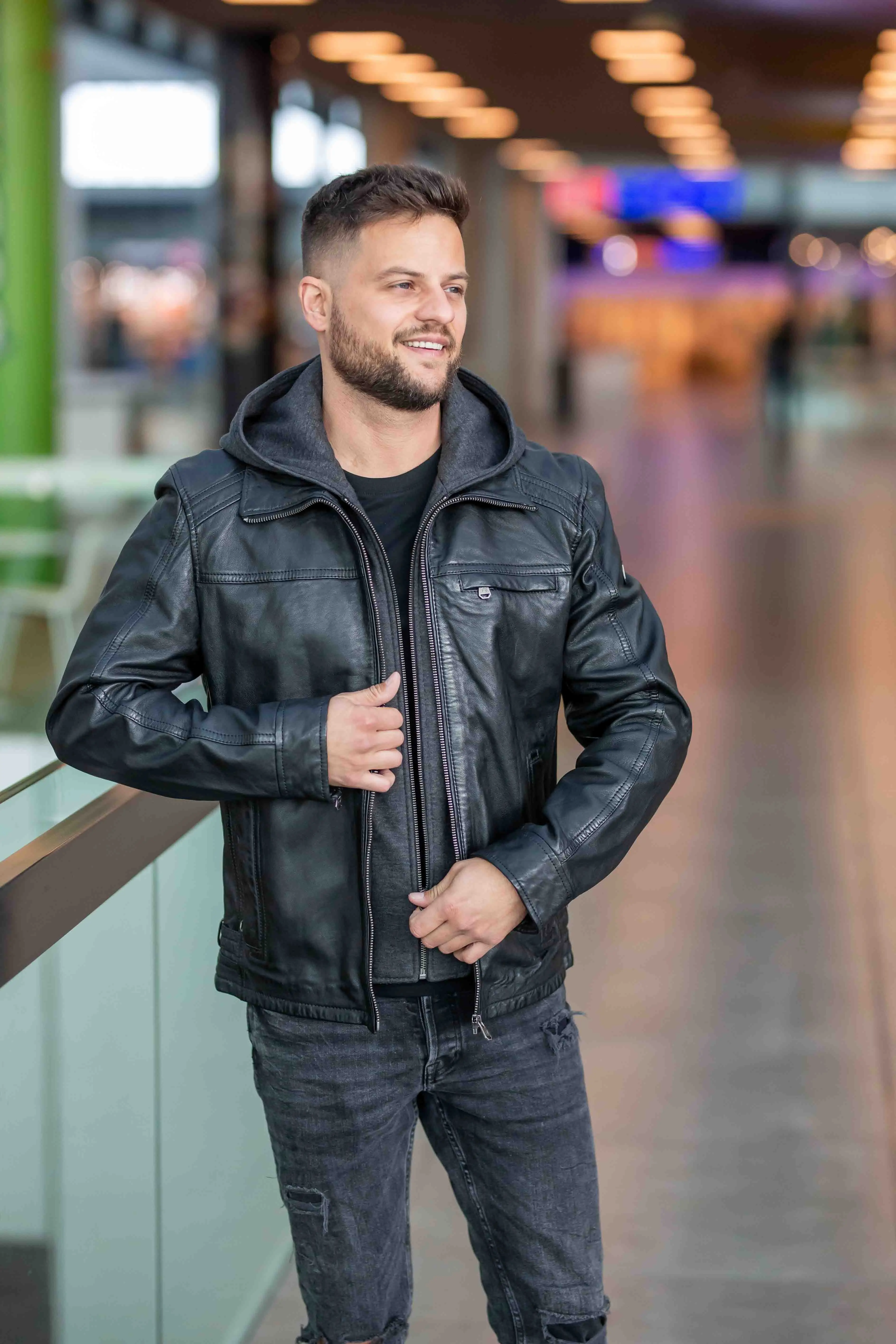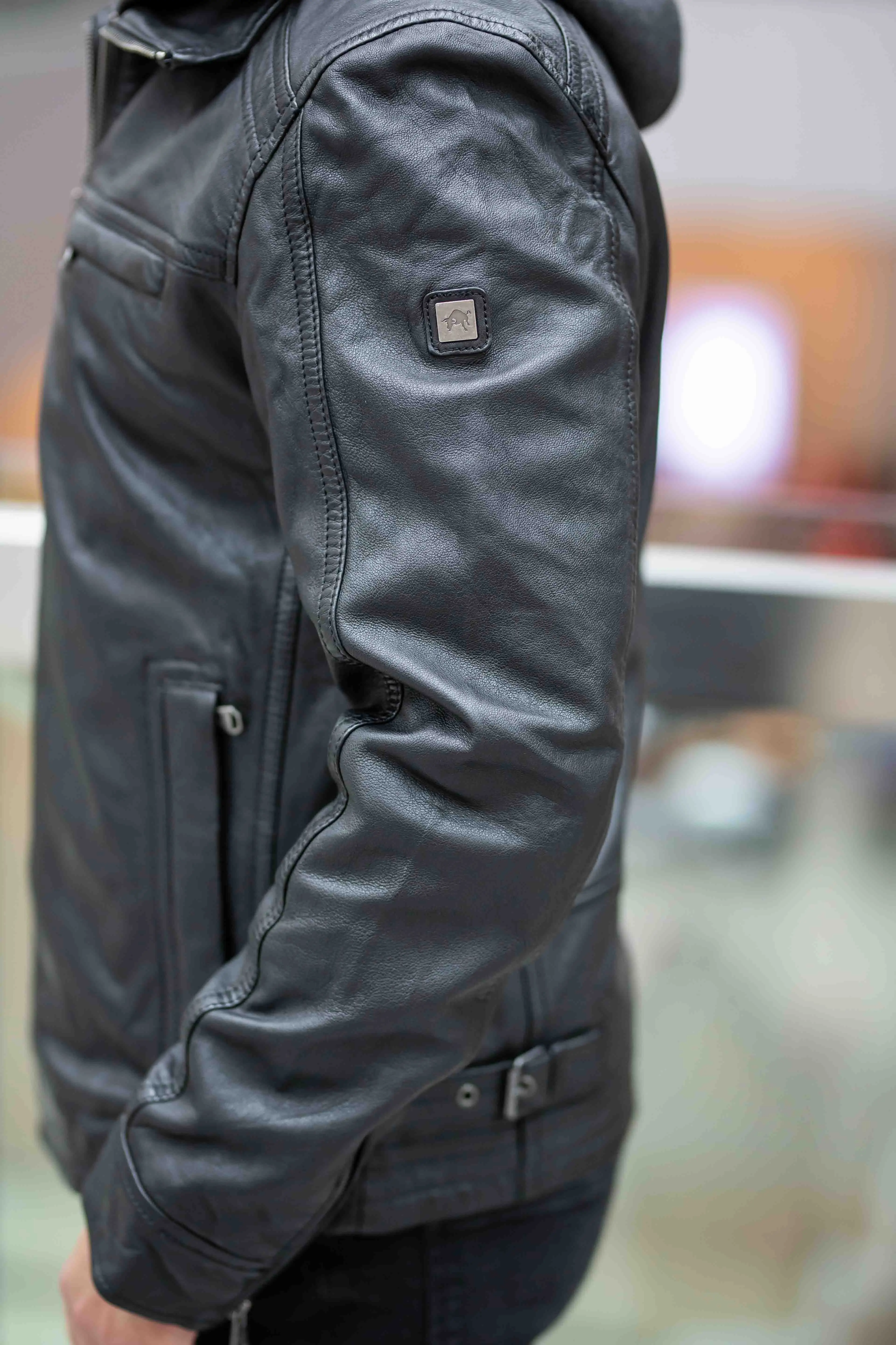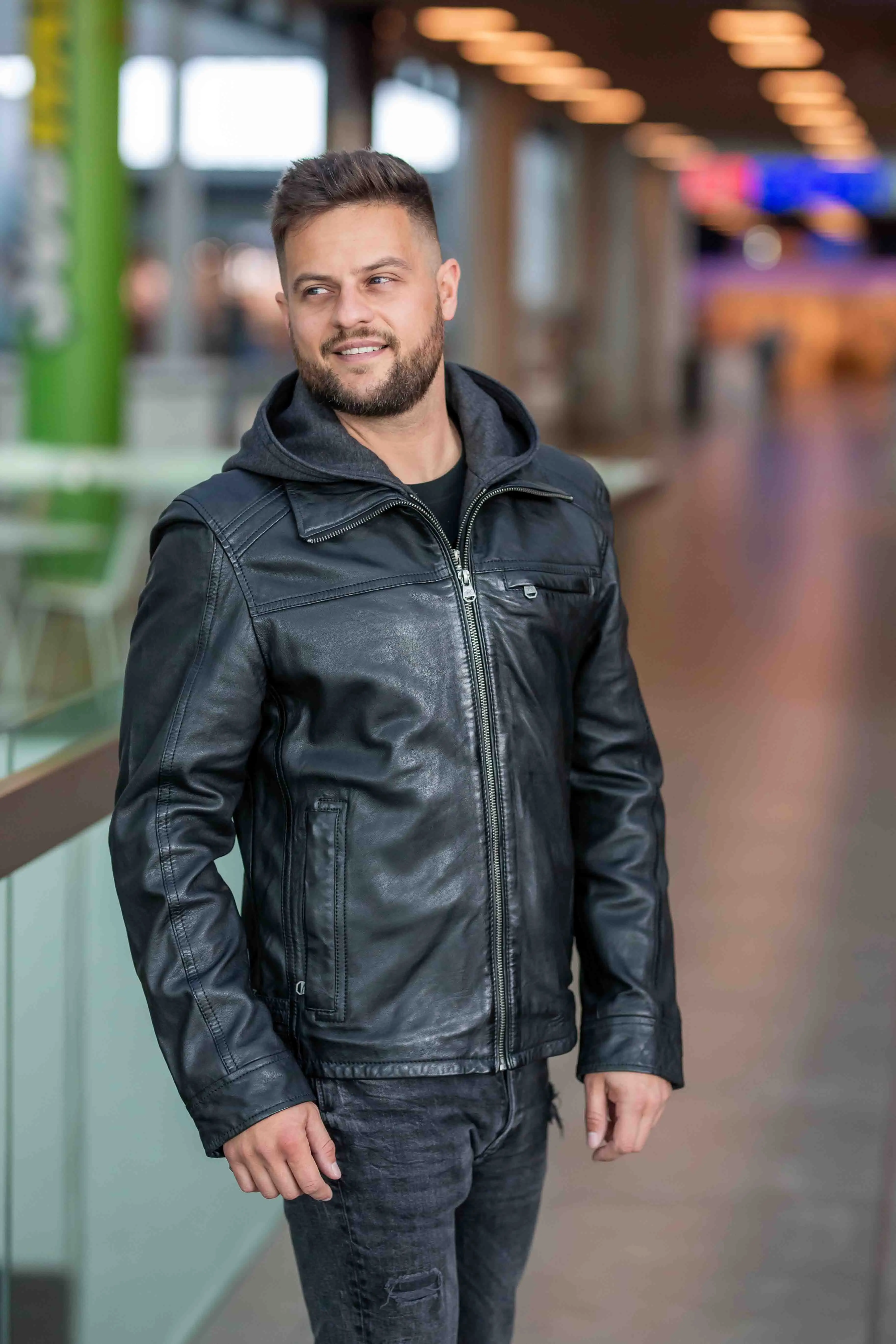 Pánská kožená bunda značky Divoký býk v černé barvě s odnímatelnou kapucí. Tato bunda je vyrobena ze 100% jehnětiny. Parádní kus ve velikostech 50 až 66.