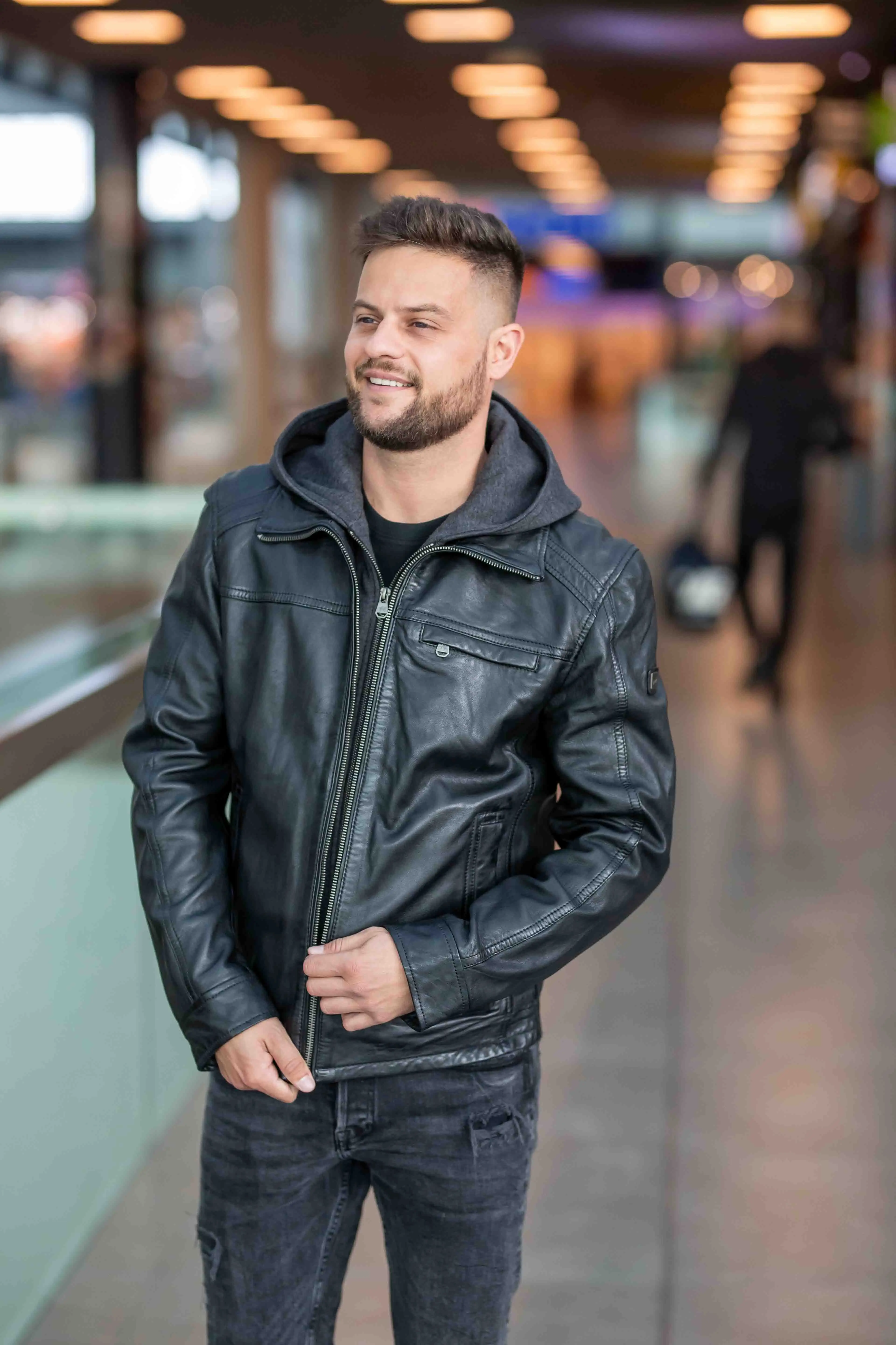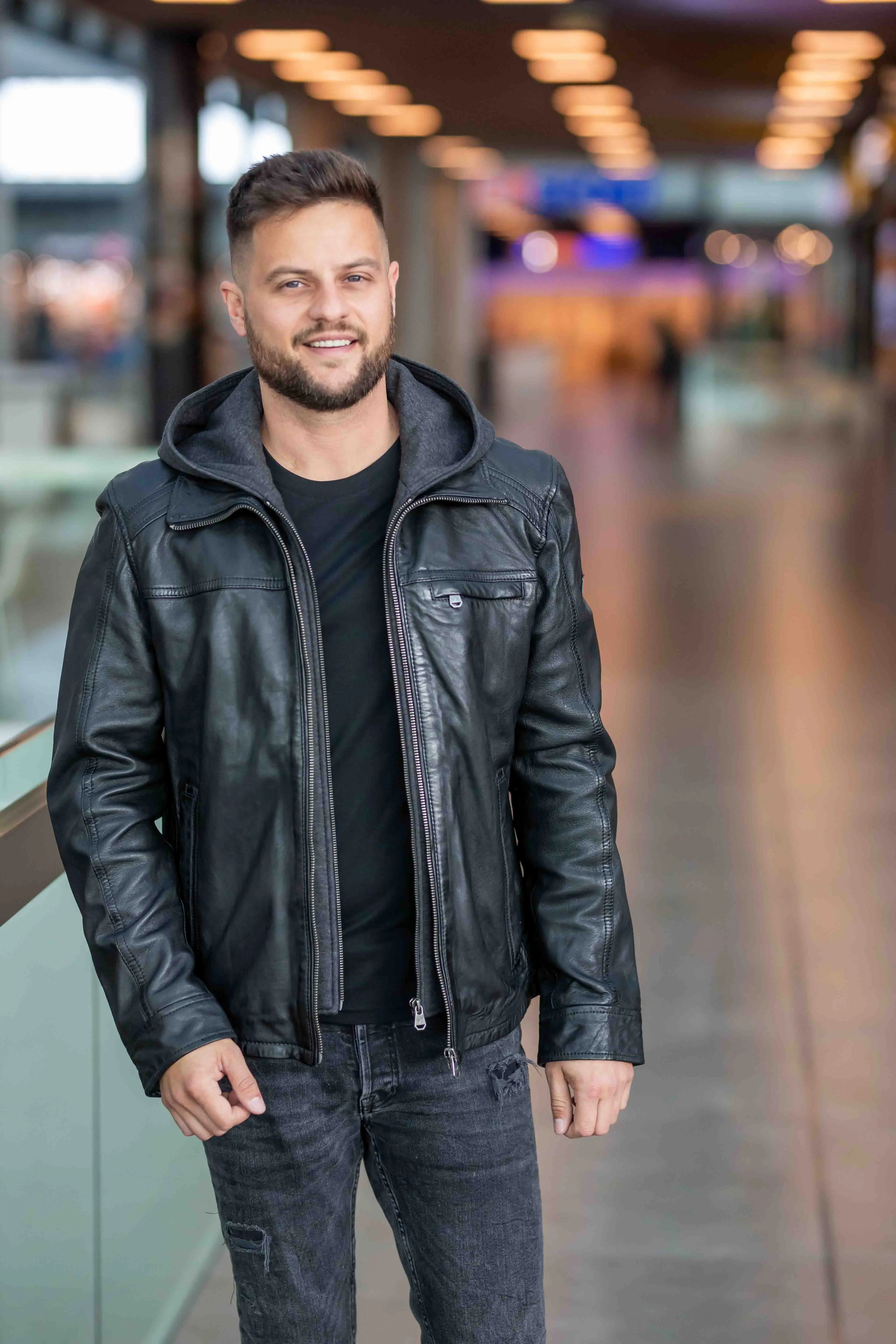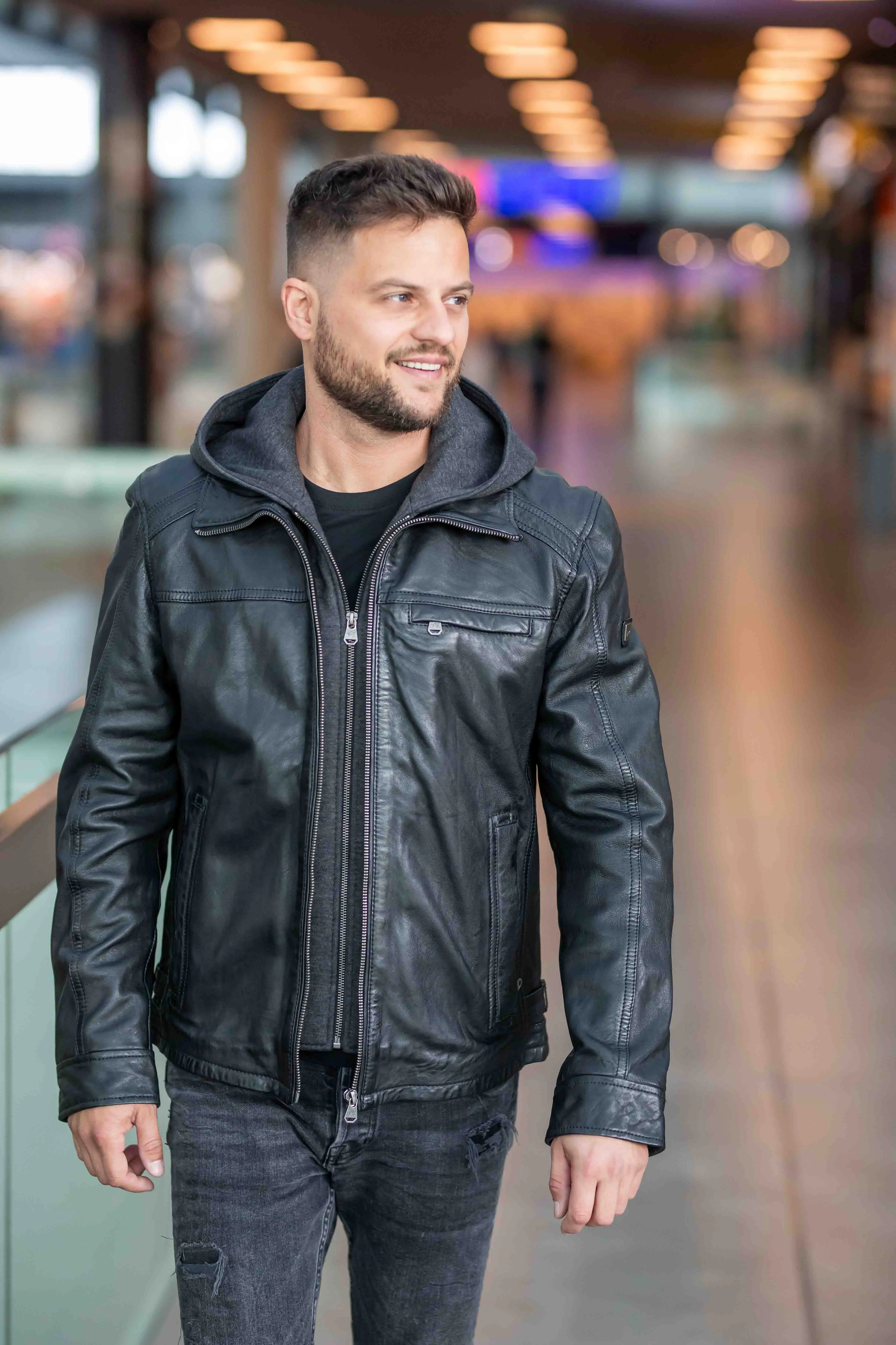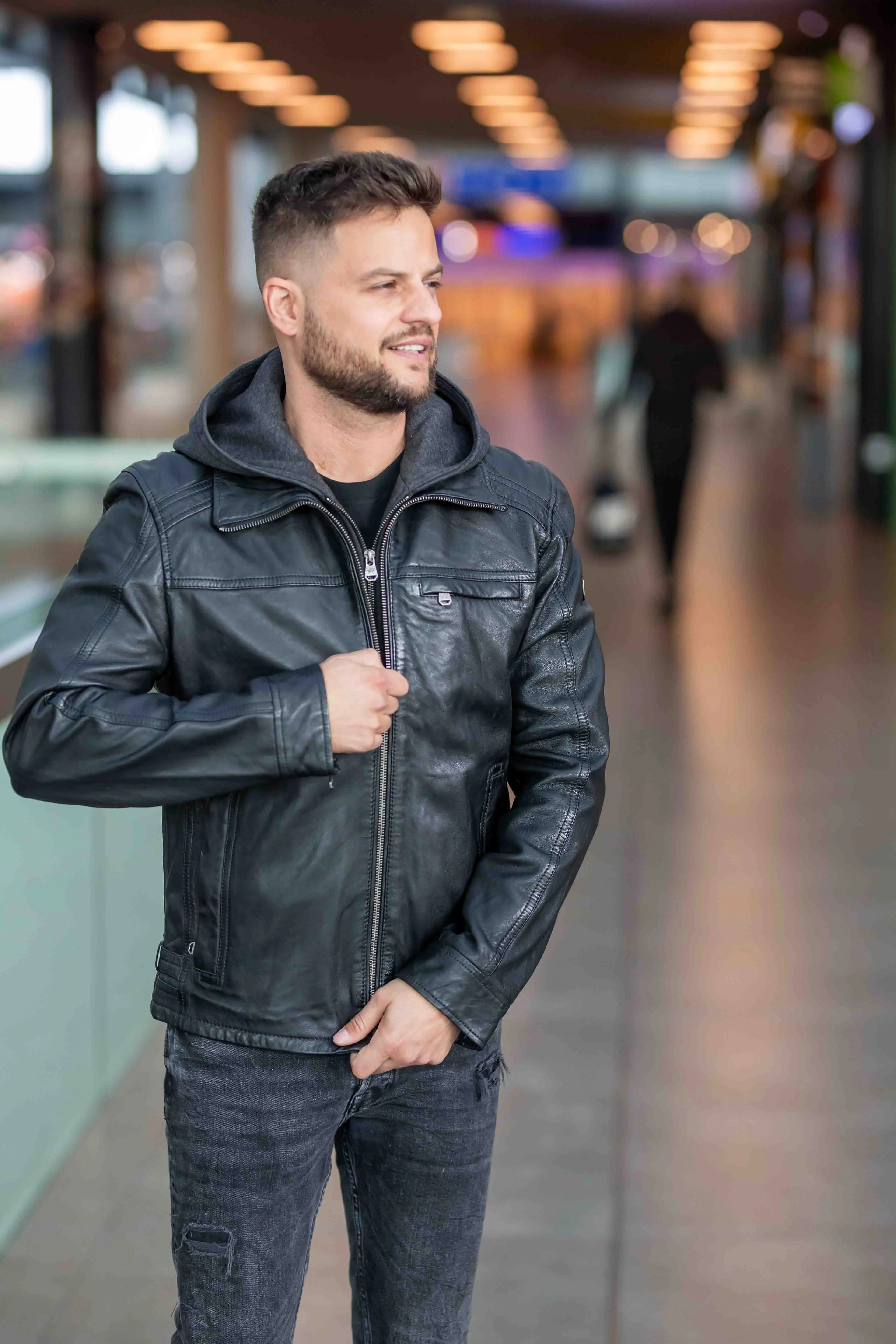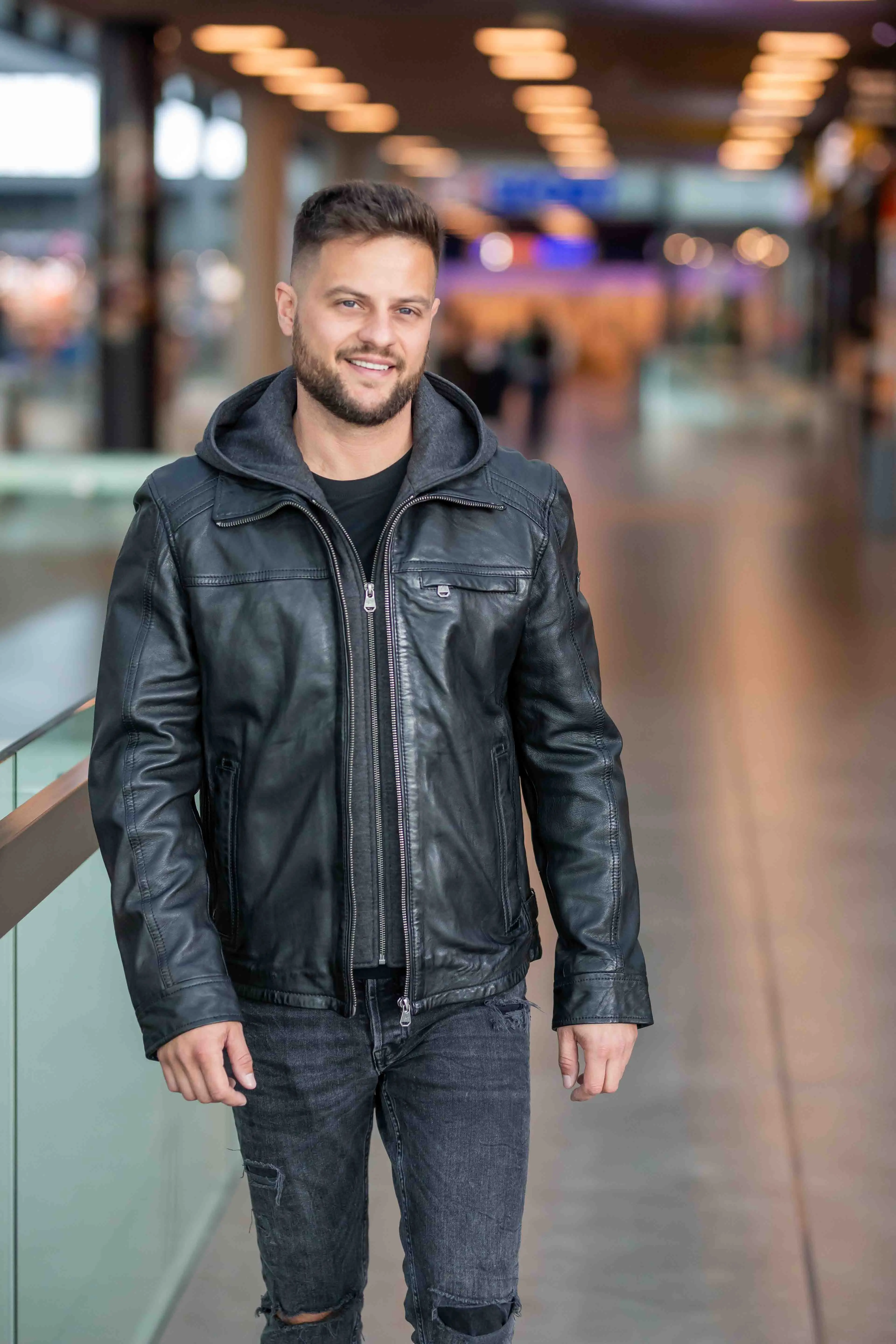 Pánská kožená bunda značky Divoký býk v černé barvě s odnímatelnou kapucí. Tato bunda je vyrobena ze 100% jehnětiny. Parádní kus ve velikostech 50 až 66.