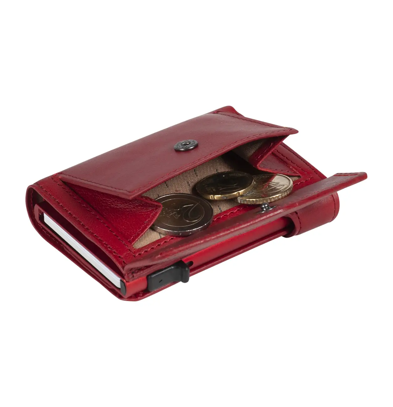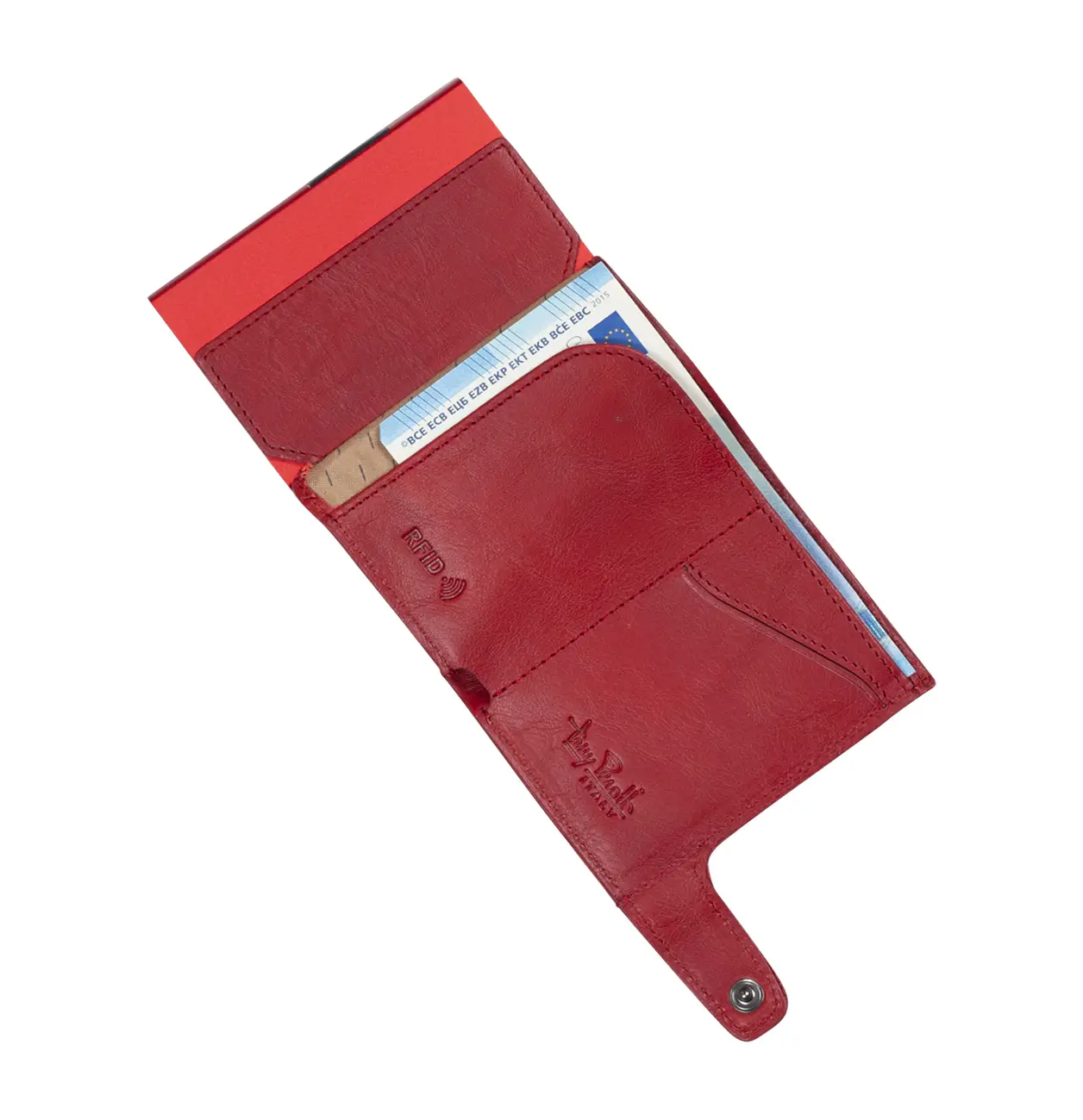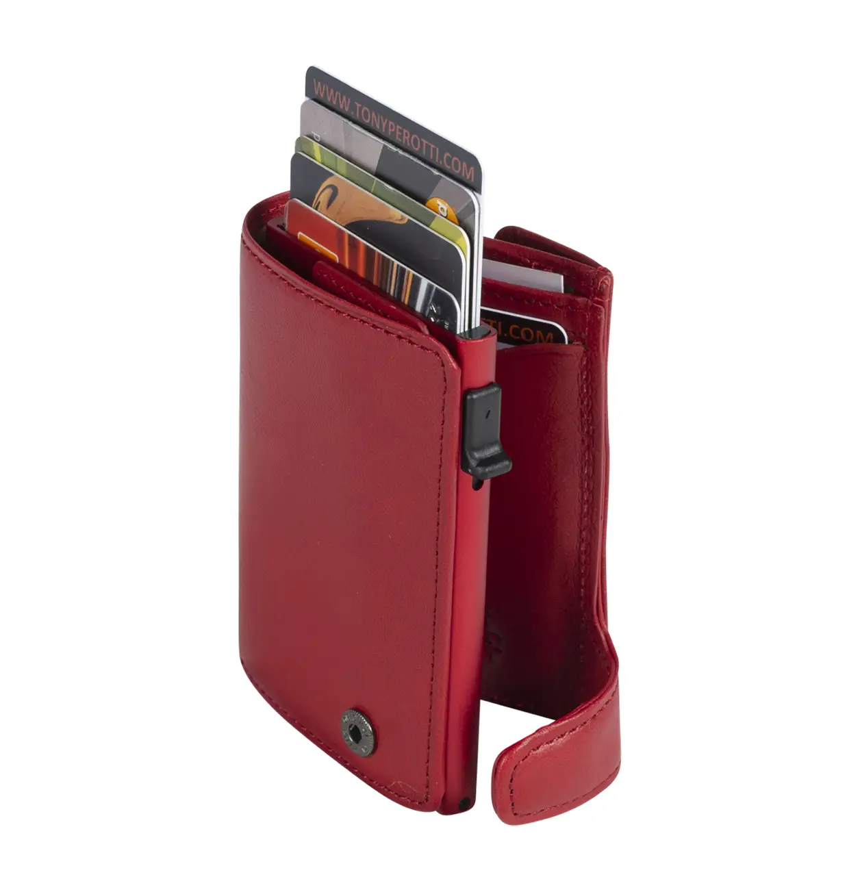 Tato kompaktní peněženka Tony Perotti je vyrobena z přírodní kůže. Peněženka má úložný prostor pro bankovky, mince, sloty pro kreditní karty a navíc hliníkový držák do kterého lze vložit 6 karet. Celá peněženka je chráněna RFID ochranou, která zabraňuje neoprávněnému přístupu k bezkontaktním kartám.