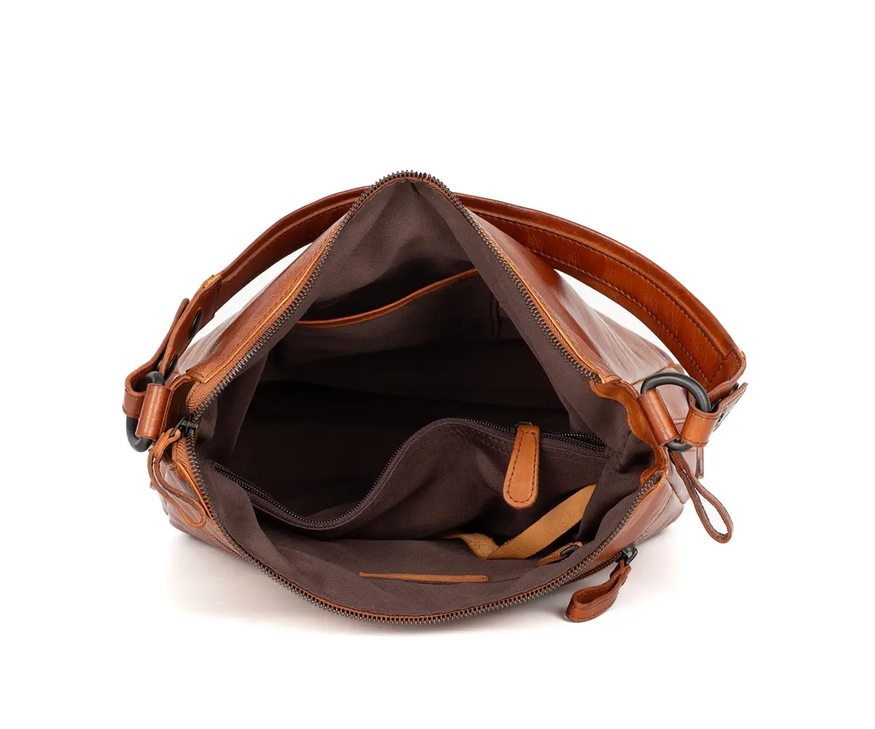 Díky nadčasovému designu a rafinovanému vzhledu je kožená kabelka přes rameno Gayla v hnědé barvě elegantní volbou pro každý den. Pružná kůže dodává kabelce luxusní vzhled, který se bez námahy hodí jak k ležérnímu, tak k formálnímu oblečení. Praktické uspořádání kabelky Gayla nabízí dostatek prostoru pro uspořádání vašich každodenních nezbytností. Díky přiloženému dlouhému popruhu ji můžete pohodlně nosit i jako crossbody. Stylová a všestranná kožená kabelka, která bezproblémově spojuje funkčnost a design.