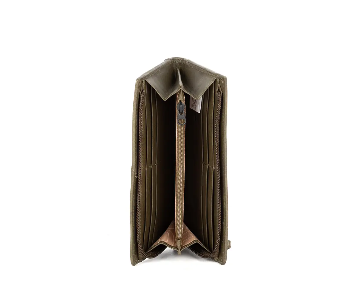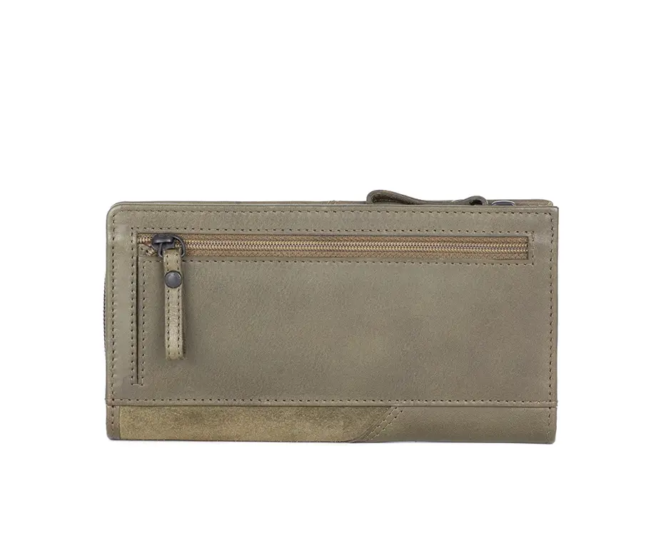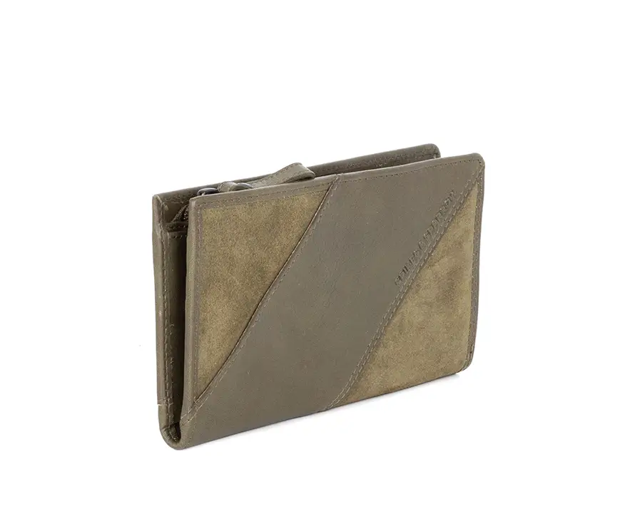 Tato zelená kožená RFID peněženka „Afra“ kombinuje odolnou apačskou kůži s měkkým semišem a vyznačuje se výrazným designem s diagonálními liniemi . Tato stylová peněženka je nejen krásná, ale i praktická. Uvnitř najdete centrální přepážku se zipem na mince a nejméně 12 přihrádek na kreditní karty . Díky RFID ochraně jsou vaše karty chráněny před snímáním. Elegantní a funkční kožená peněženka, ideální pro každodenní použití.