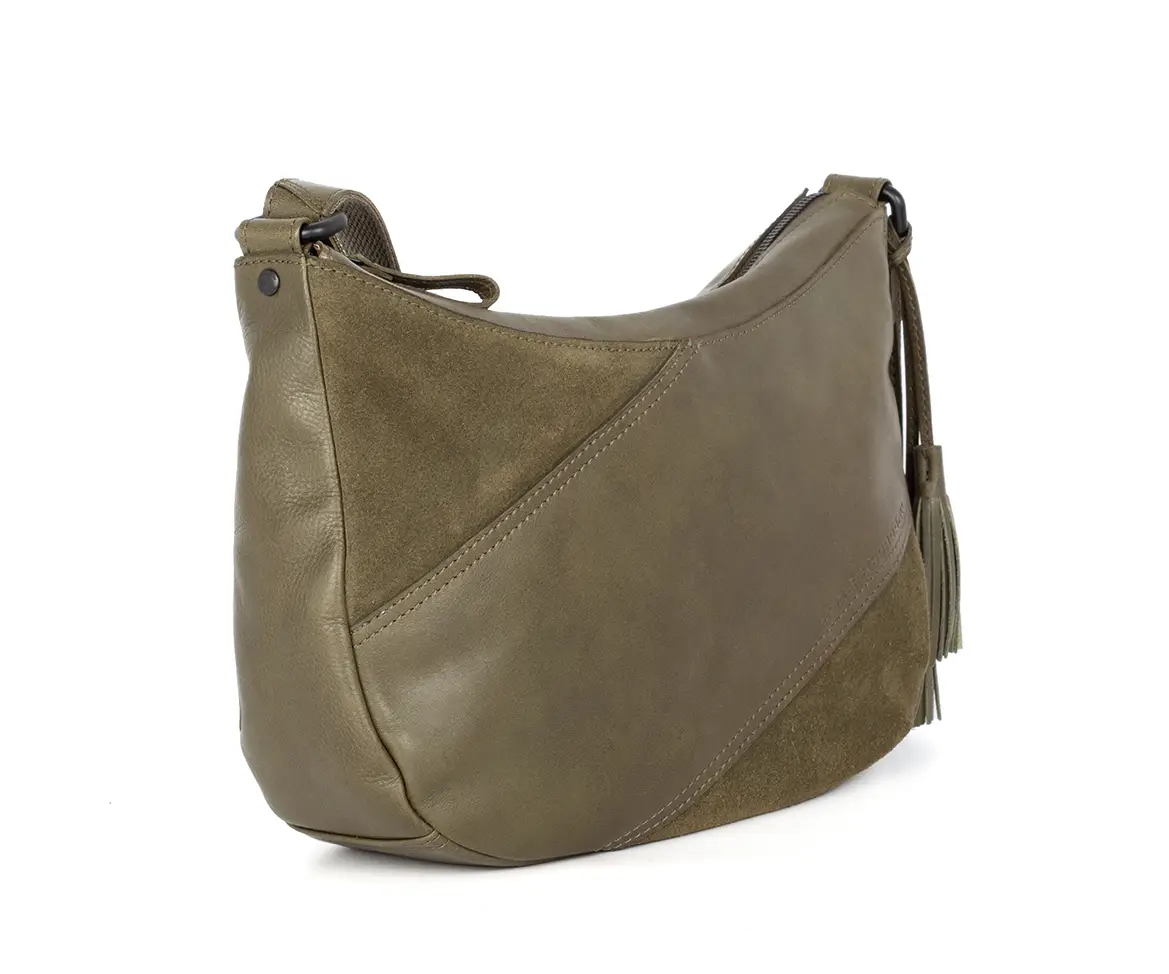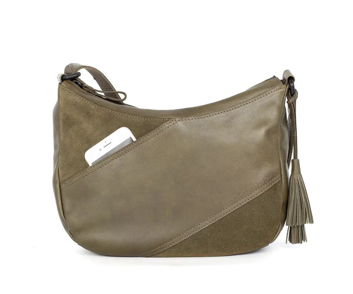 Dámská crossbody kabelka Spikes & Sparrow „Lorain“ kombinuje poddajnou kůži s měkkým semišem pro luxusní a hřejivý vzhled. Zelená barva, diagonální linie a hravé kožené třásně dodávají této kožené crossbody kabelce ženský a moderní vzhled. Její kompaktní velikost nabízí dostatek prostoru pro vaše každodenní nezbytnosti. Díky nastavitelnému ramennímu popruhu můžete kabelku pohodlně nosit celý den. Vysoce kvalitní kůže si časem vytvoří jedinečný charakter, díky čemuž je každá kabelka osobnější.