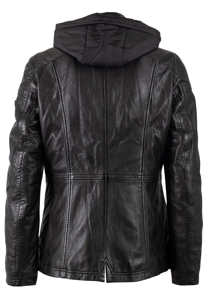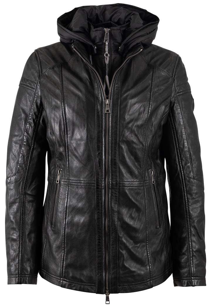 Dámská černá kožená bunda vyrobená ze 100% jehnětiny. Bunda má jemné zateplení, odnímatelnou kapuci (100% polyester) je vypasovaná v bocích s prodlouženou délkou (střih regular) . Jedná se náš originální výrobek Divoký býk z kvalitní lícové kůže.