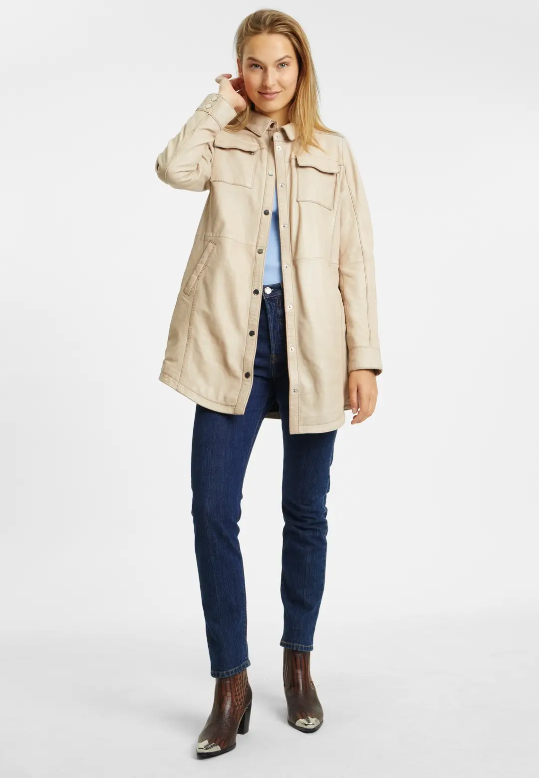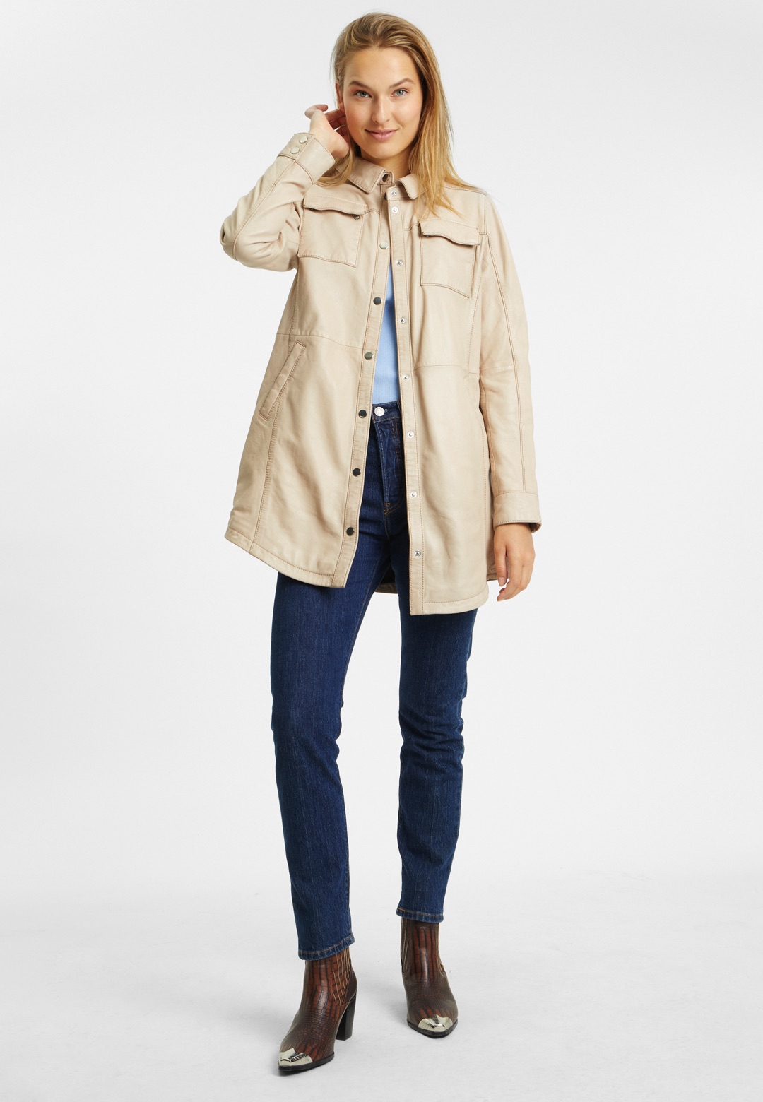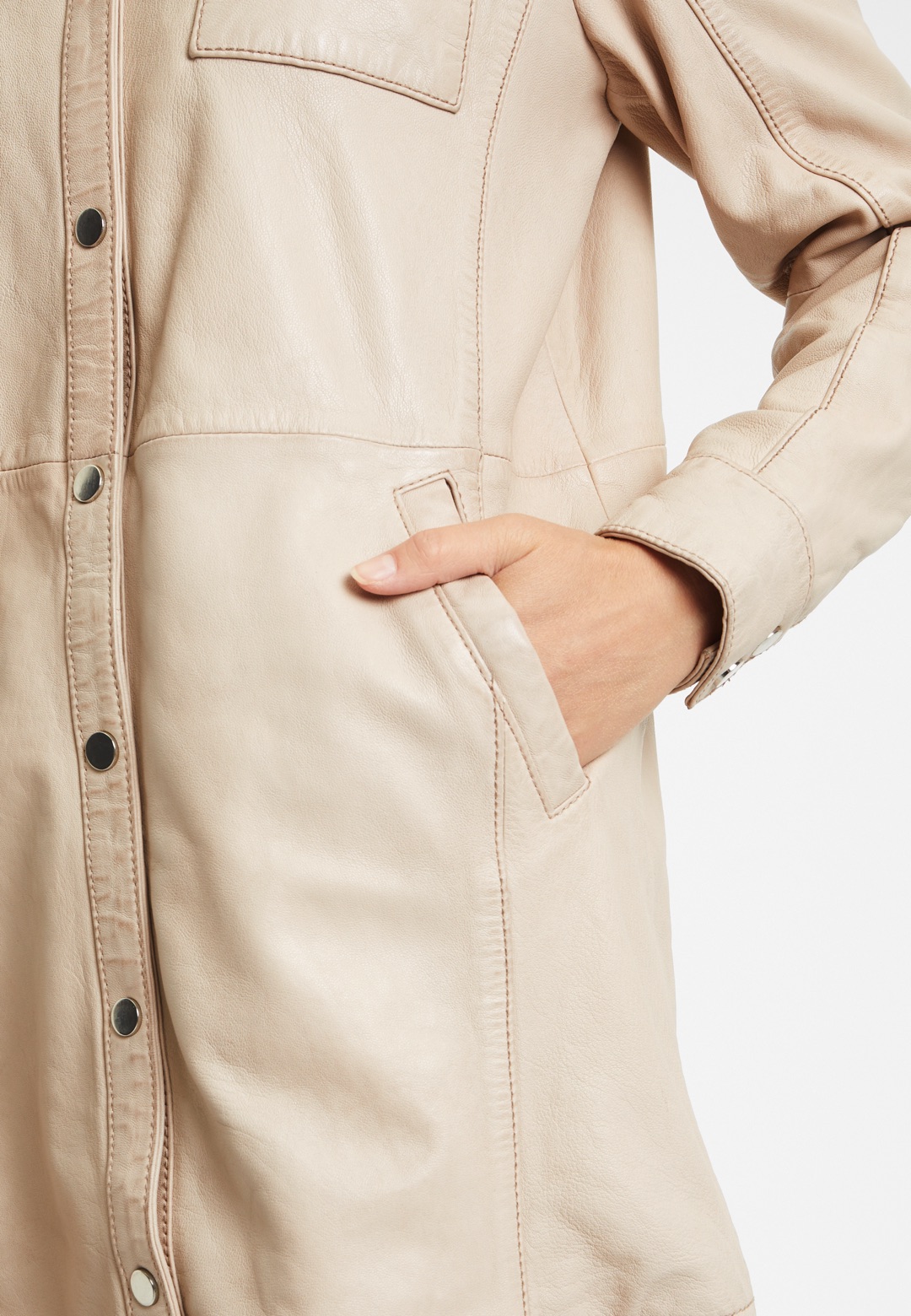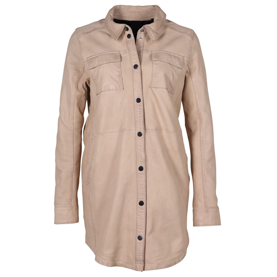 Dámský béžový kožený kabátek - prodloužená oversize košile G2WMiha
