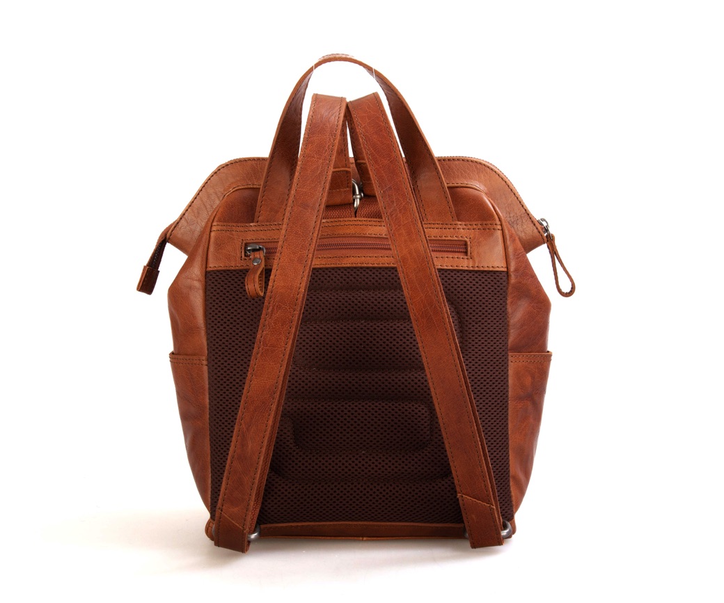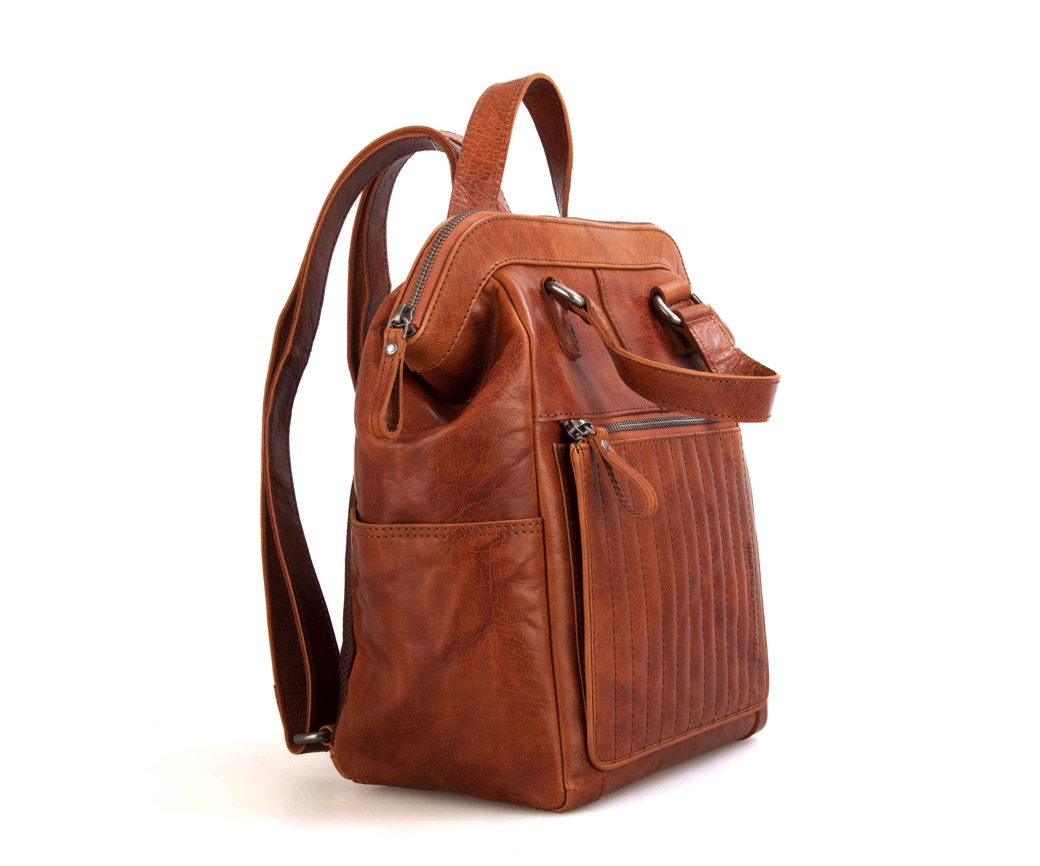 Tento dámský koženy brandy batoh značky SPIKES & SPARROW. Je ideálním doplňkem pro Váš volný čas. Vnější dvě přihrádky jsou uzavíratelné na zip. V přední přihrádce jdou bezproblému uložit dokumenty o velikosti A4. Také jsou zde poutka na pera, a vnitřní přihrádka na zip.