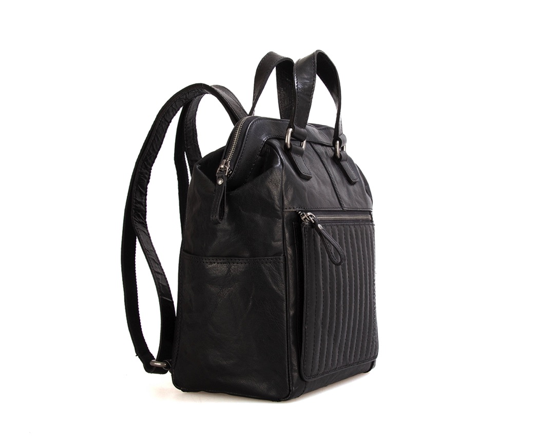 Tento dámský koženy černý batoh značky SPIKES & SPARROW. Je ideálním doplňkem pro Váš volný čas. Vnější dvě přihrádky jsou uzavíratelné na zip. V přední přihrádce jdou bezproblému uložit dokumenty o velikosti A4. Také jsou zde poutka na pera, a vnitřní přihrádka na zip.