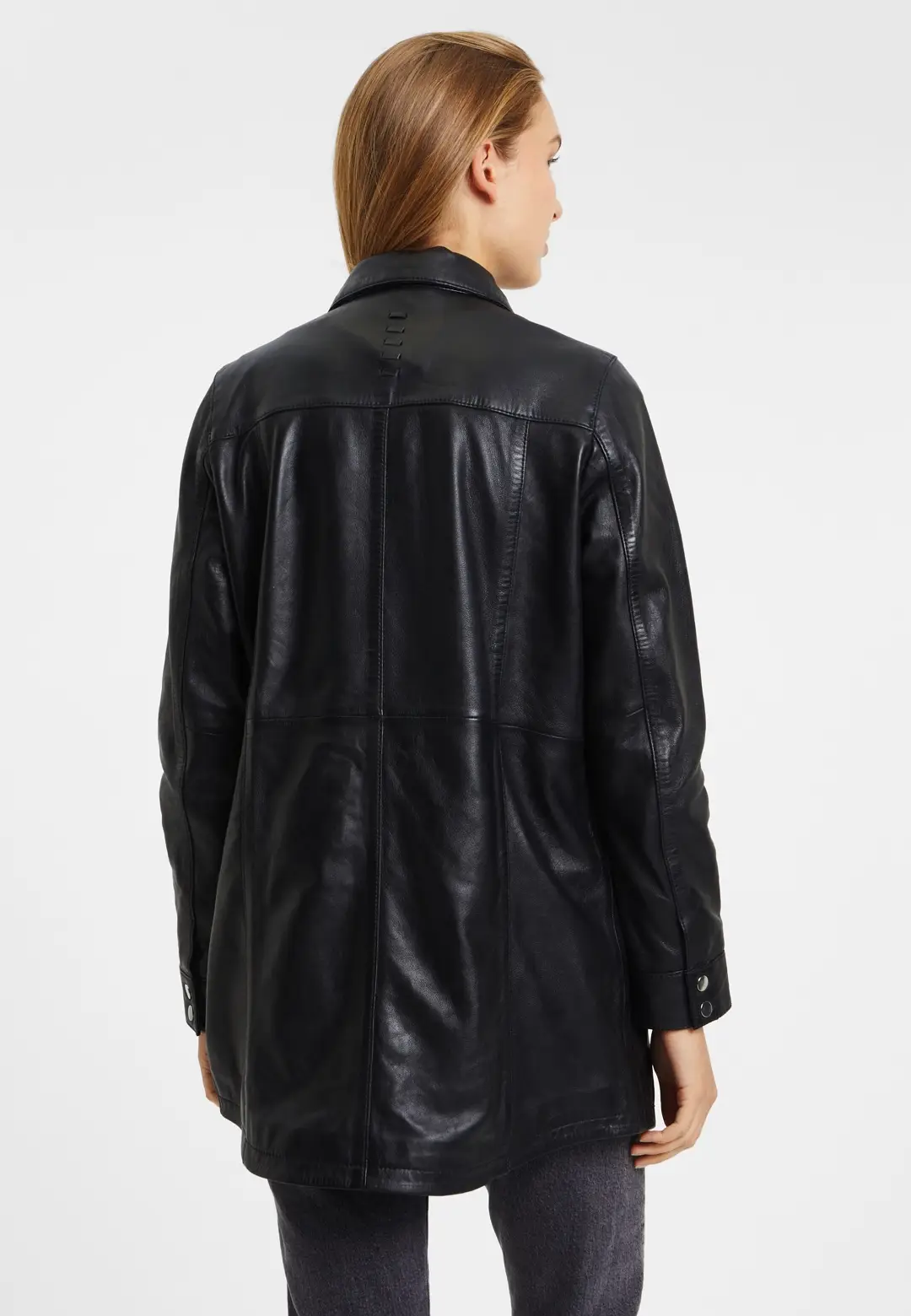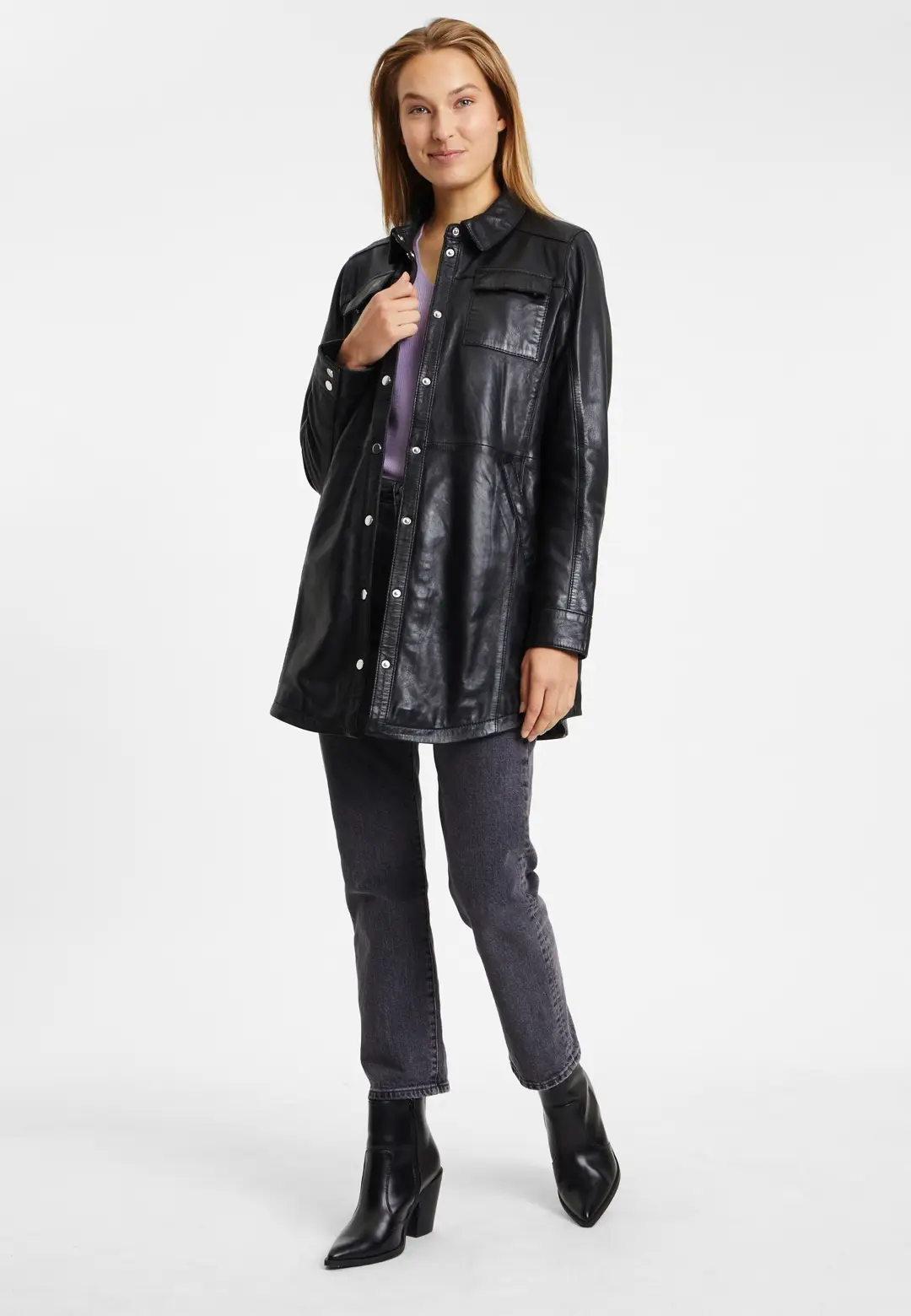 Dámský černý kožený kabátek- prodloužená Oversize košile G2WMalia