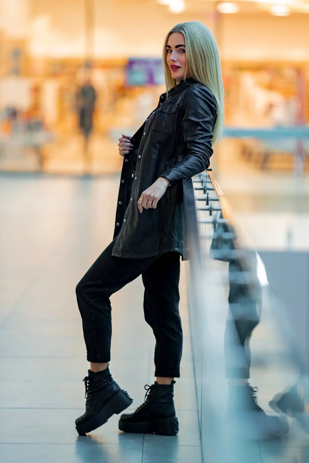Dotaz k produktu - Dámský černý kožený kabátek- prodloužená oversize košile G2WMiha