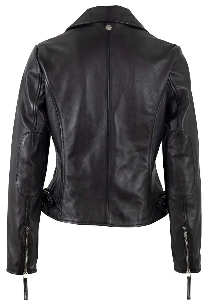 Dámský klasický kožený křivák v černé barvě střižený do pasu, vyrobený ze 100% jehnětiny se stříbrnými doplňky. Střih Regular-Fit pro běžné postavy.