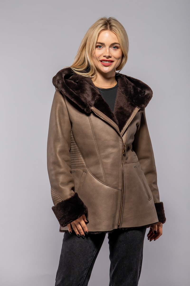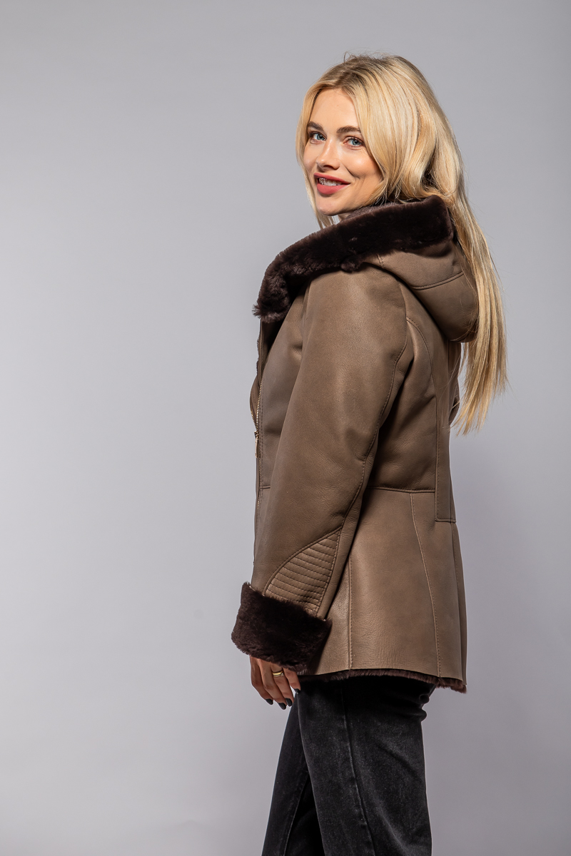 Luxusní kratší dámský kožich z velmi příjemného a lehkého materiálu-beránek, Barva šedá.
